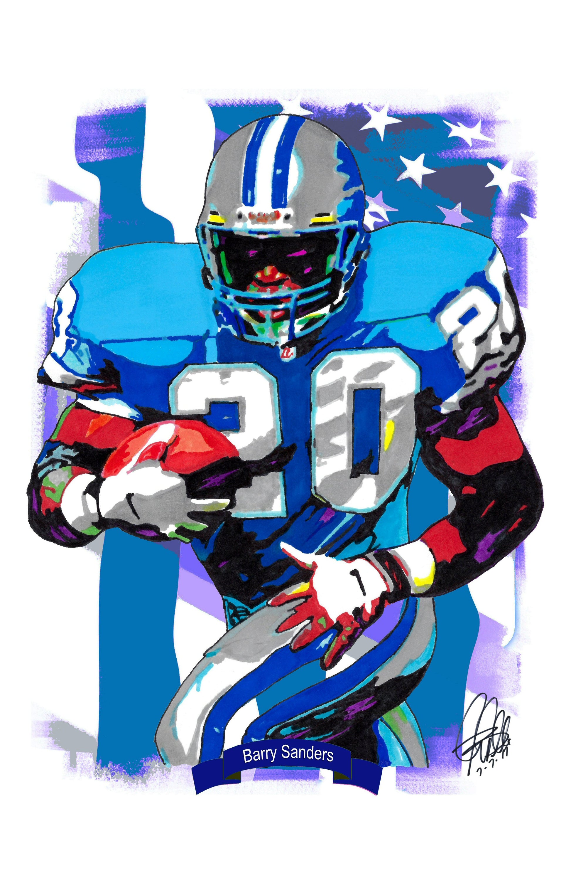 Print from Original Ink Drawing of Barry Sanders of the Detroit Lions. Printed on 11"x17" Premium Gloss High Quality Photo Paper. Print is great for matting and display – Signed & Dated by Artist on front of print - comes with Certificate of Authenticity with Your Name - will be shipped inside 3 x 30" 2 Mil Industrial Poly Bag & 2" x 19" Kraft Mailing Tubes with End Caps - .070: thick.