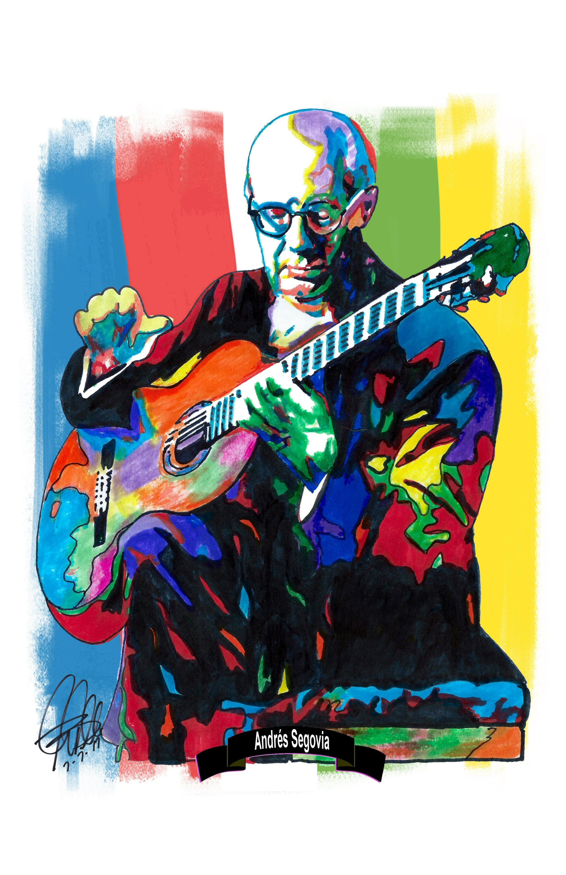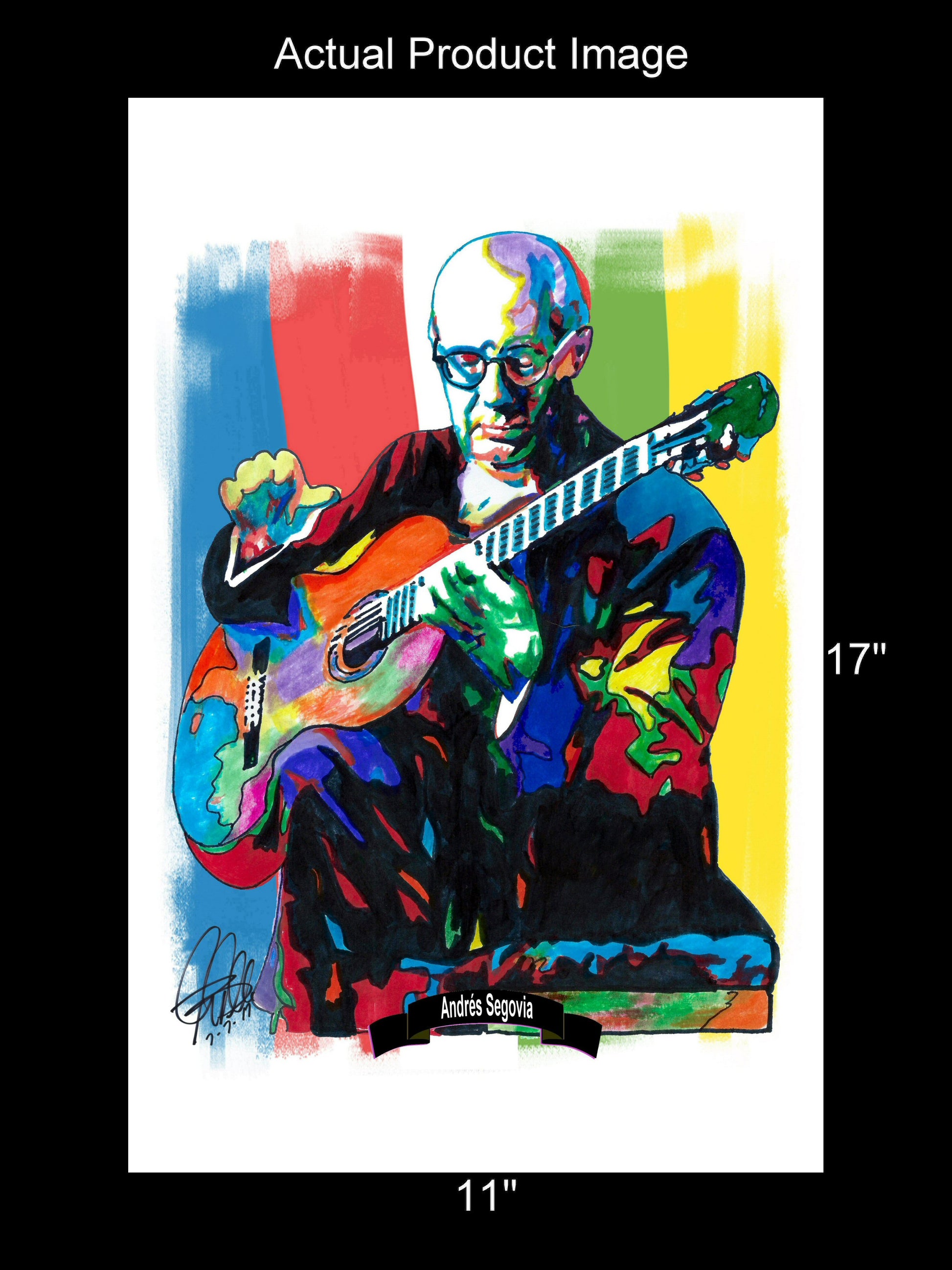 Print from Original Ink Drawing of Andrés Segovia. Printed on 11"x17" Premium Gloss High Quality Photo Paper. Print is great for matting and display – Signed & Dated by Artist on front of print - comes with Certificate of Authenticity with Your Name - will be shipped inside 3 x 30" 2 Mil Industrial Poly Bag & 2" x 19" Kraft Mailing Tubes with End Caps - .070: thick