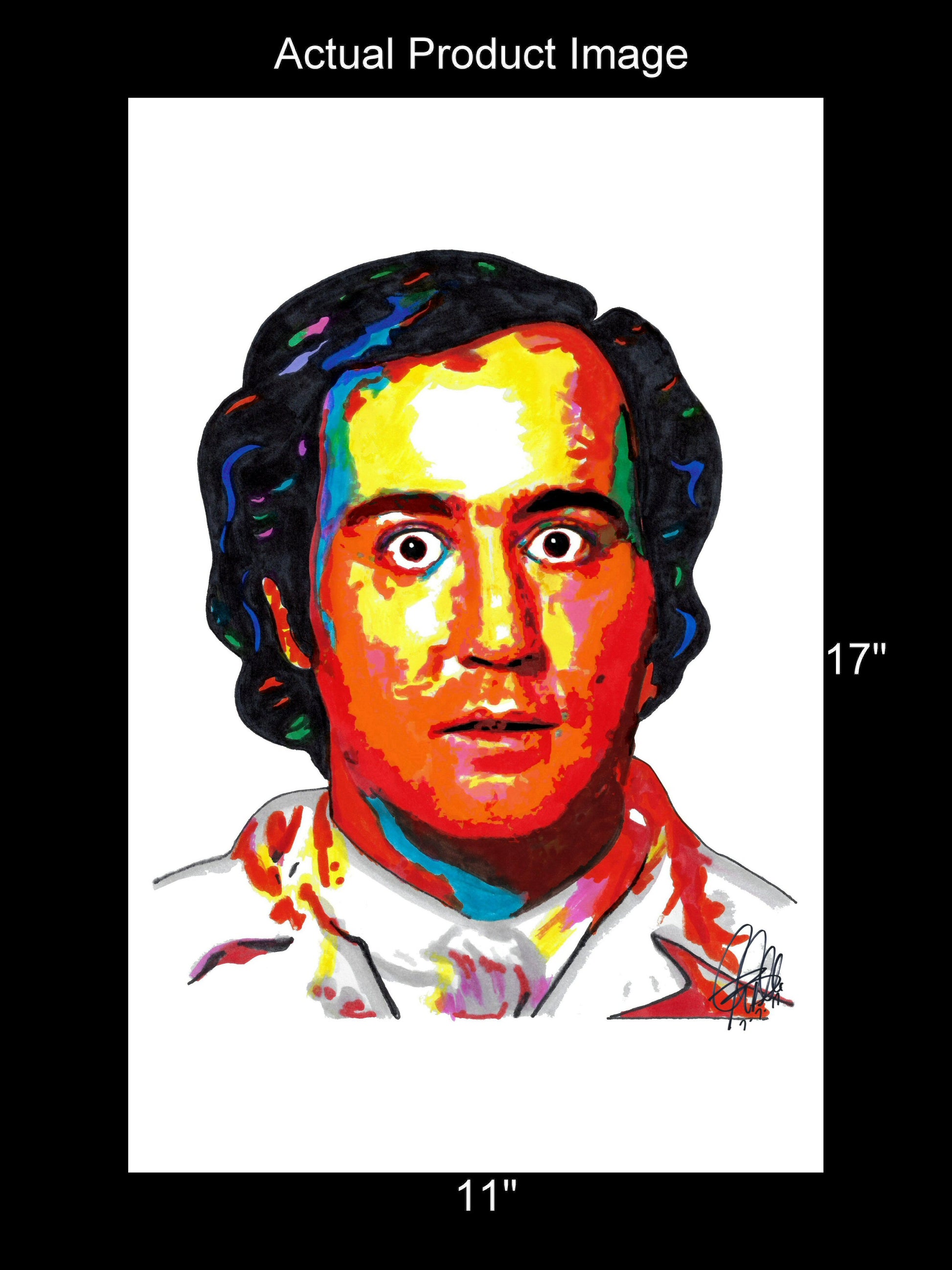 Print from Original Ink Drawing of Andy Kaufman. Printed on 11"x17" Premium Gloss High Quality Photo Paper. Print is great for matting and display – Signed & Dated by Artist on front of print - comes with Certificate of Authenticity with Your Name - will be shipped inside 3 x 30" 2 Mil Industrial Poly Bag & 2" x 19" Kraft Mailing Tubes with End Caps - .070: thick