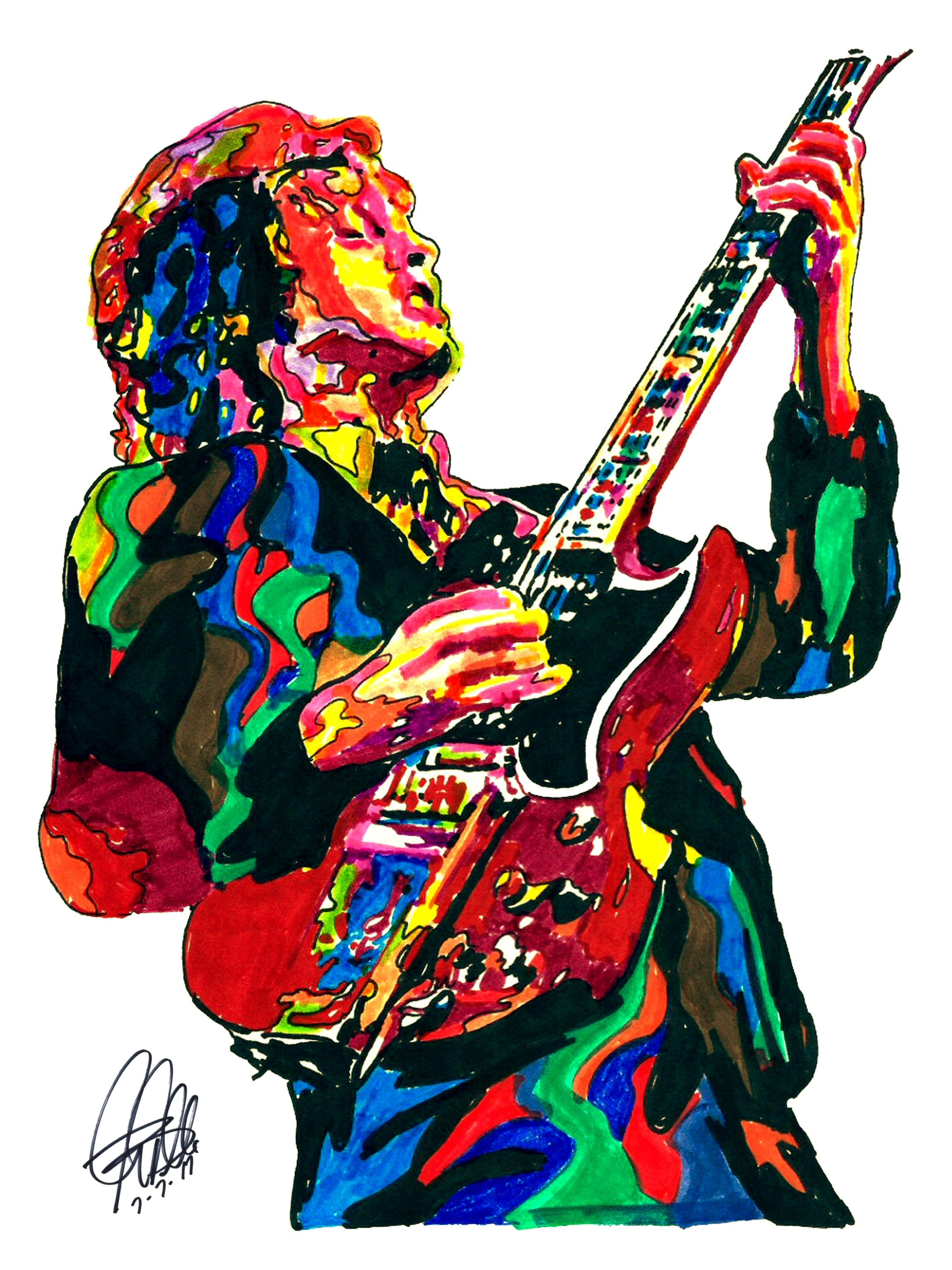 Print from Original Ink Drawing of Angus Young AC/DC. Printed on 18"x24" Premium Gloss High Quality Photo Paper. Print is great for matting and display – Signed & Dated by Artist on front of print - comes with Certificate of Authenticity with Your Name - will be shipped inside 3 x 30" 2 Mil Industrial Poly Bag & 2" x 19" Kraft Mailing Tubes with End Caps - .070: thick