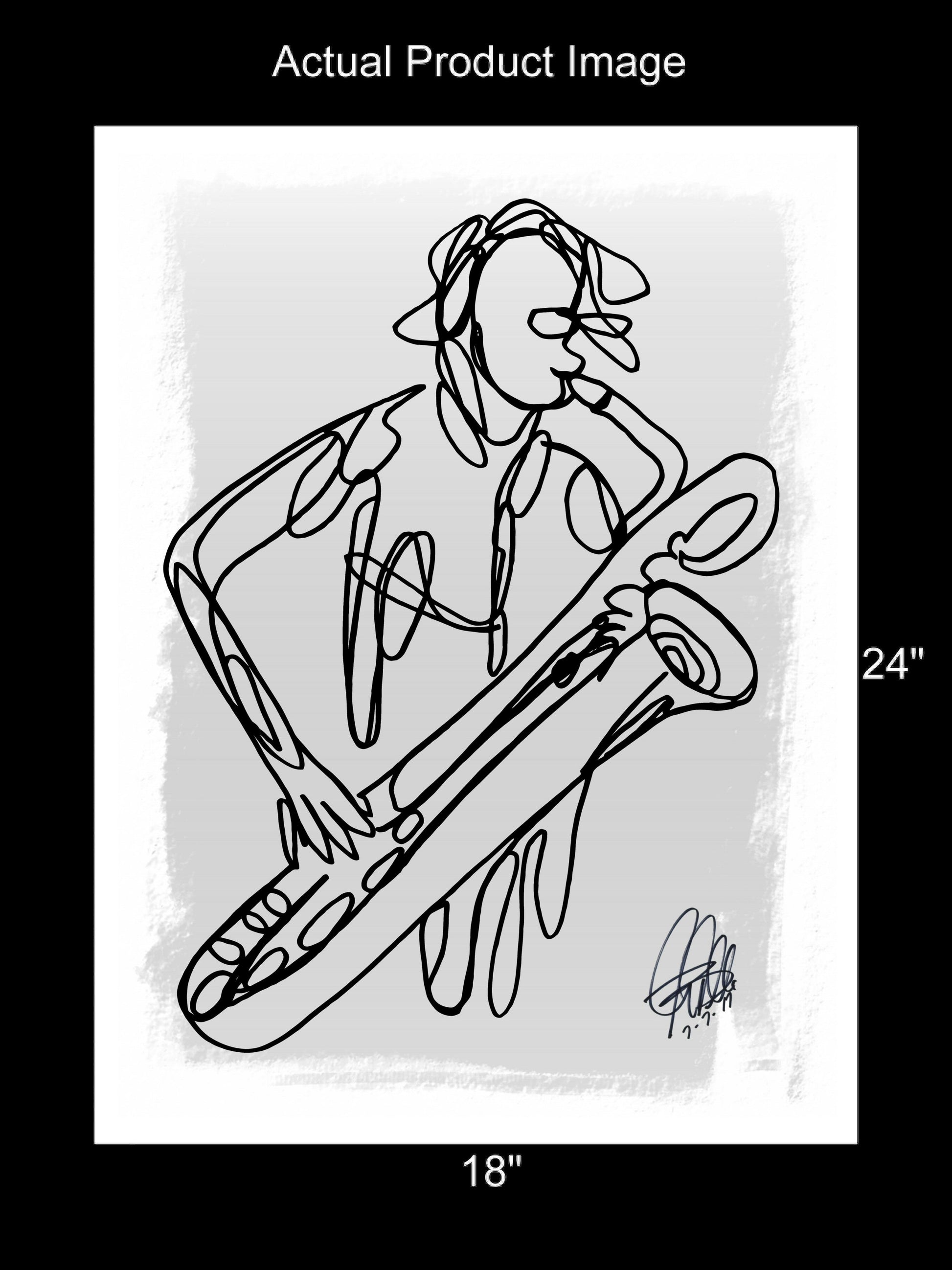 Print from Original Ink Drawing of Baritone Sax Player. Printed on 18"x24" Premium Gloss High Quality Photo Paper. Print is great for matting and display – Signed & Dated by Artist on front of print - comes with Certificate of Authenticity with Your Name - will be shipped inside 3 x 30" 2 Mil Industrial Poly Bag & 2" x 19" Kraft Mailing Tubes with End Caps - .070: thick