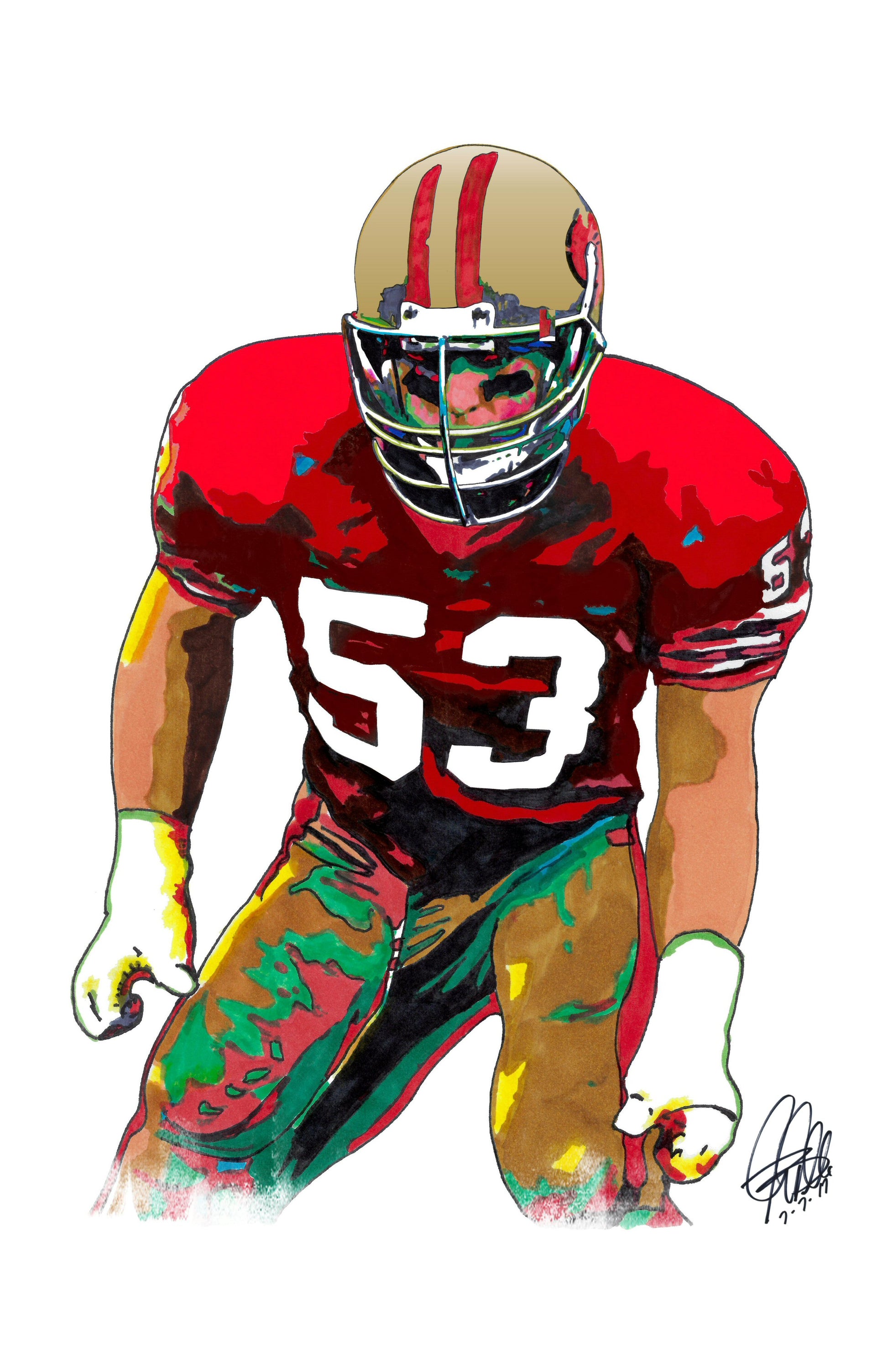 Print from Original Ink Drawing of Bill Romanowski of the San Francisco 49ers. Printed on 11"x17" Premium Gloss High Quality Photo Paper. Print is great for matting and display – Signed & Dated by Artist on front of print - comes with Certificate of Authenticity with Your Name - will be shipped inside 3 x 30" 2 Mil Industrial Poly Bag & 2" x 19" Kraft Mailing Tubes with End Caps - .070: thick.