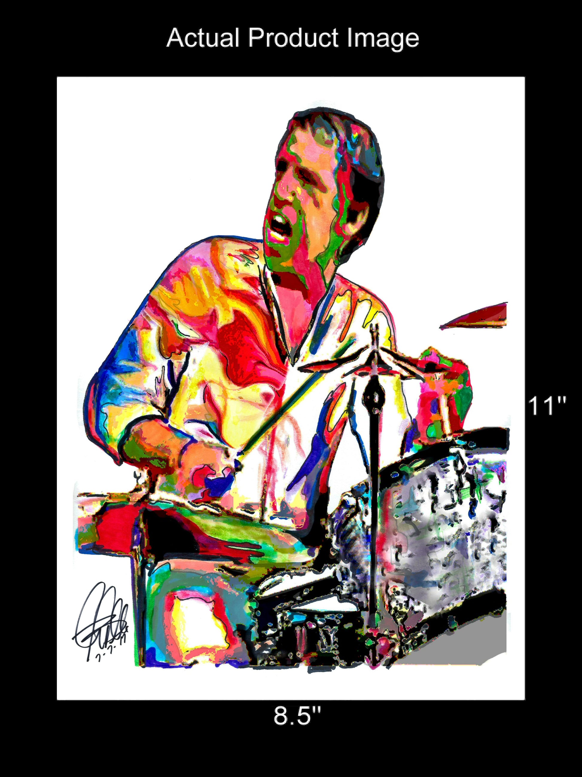 Print from Original Ink Drawing of Buddy Rich. Printed on 8.5"x11" Premium Gloss High Quality Photo Paper. Print is great for matting and display – Signed & Dated by Artist on front of print - comes with Certificate of Authenticity with Your Name - will be shipped inside 12"x12"x1" sturdy container.
