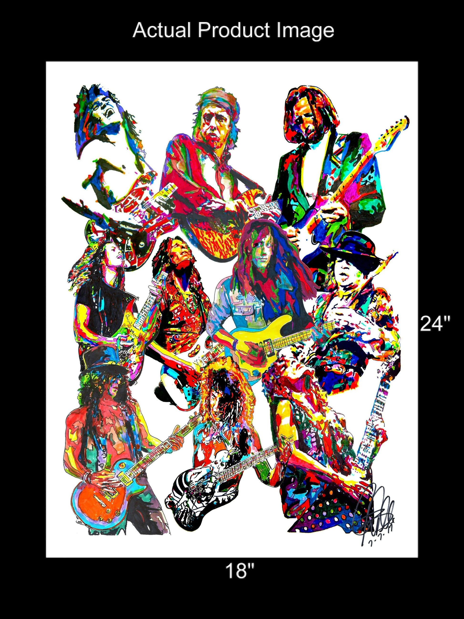 Print from Original Ink Drawing of 80's Guitar Players. Printed on 18"x24" Premium Gloss High Quality Photo Paper. Print is great for matting and display – Signed & Dated by Artist on front of print - comes with Certificate of Authenticity with Your Name - will be shipped inside 3 x 30" 2 Mil Industrial Poly Bag & 2" x 19" Kraft Mailing Tubes with End Caps - .070: thick