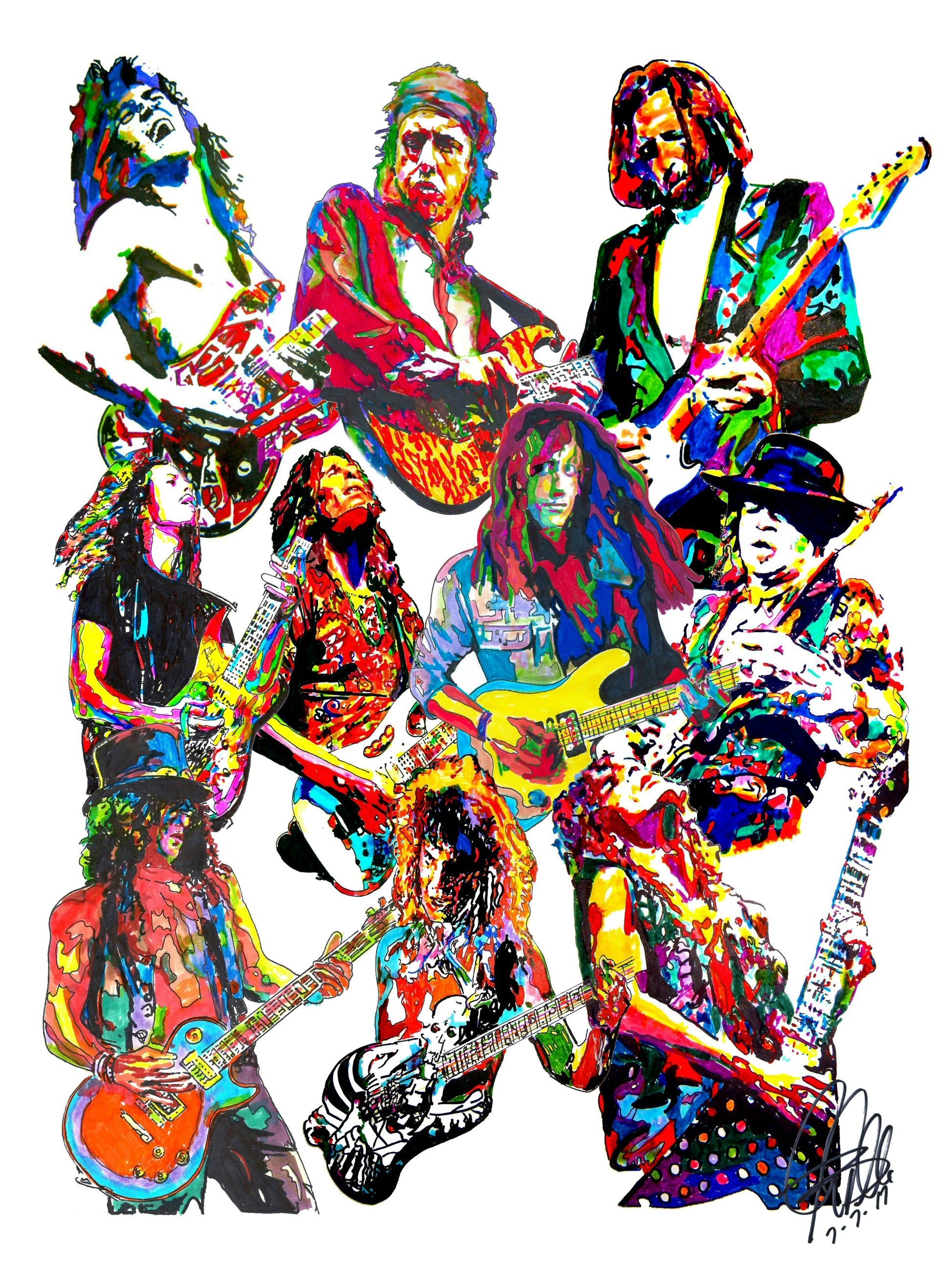 Print from Original Ink Drawing of 80's Guitar Players. Printed on 8.5"x11" Premium Gloss High Quality Photo Paper. Print is great for matting and display – Signed & Dated by Artist on front of print - comes with Certificate of Authenticity with Your Name - will be shipped inside 12"x12"x1" sturdy container.