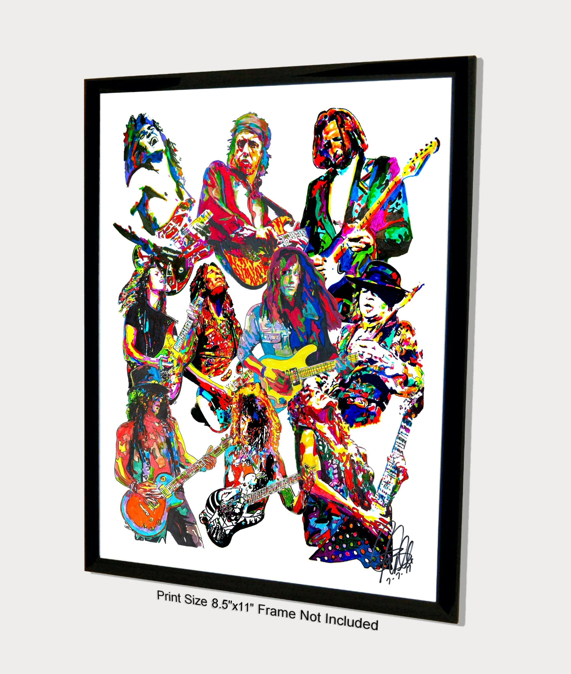 80s Guitar Players Van Halen Rhoads SRV Music Poster Print Wall Art 8.5x11