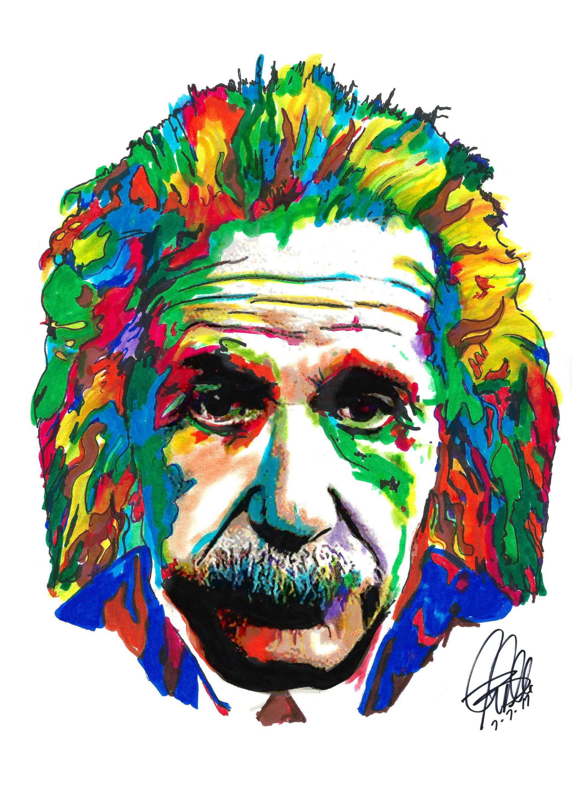Print from Original Ink Drawing of Albert Einstein. Printed on 18"x24" Premium Gloss High Quality Photo Paper. Print is great for matting and display – Signed & Dated by Artist on front of print - comes with Certificate of Authenticity with Your Name - will be shipped inside 3 x 30" 2 Mil Industrial Poly Bag & 2" x 19" Kraft Mailing Tubes with End Caps - .070: thick