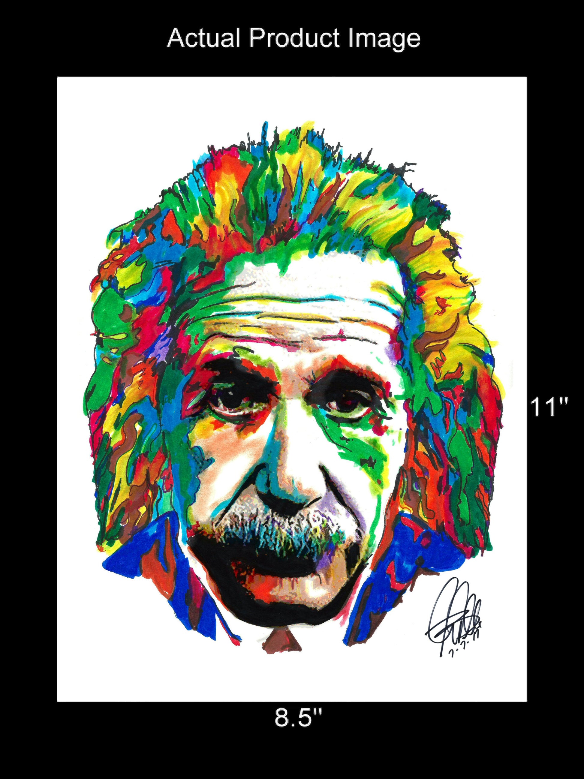 Print from Original Ink Drawing of Albert Einstein. Printed on 8.5"x11" Premium Gloss High Quality Photo Paper. Print is great for matting and display – Signed & Dated by Artist on front of print - comes with Certificate of Authenticity with Your Name - will be shipped inside 12"x12"x1" sturdy container.