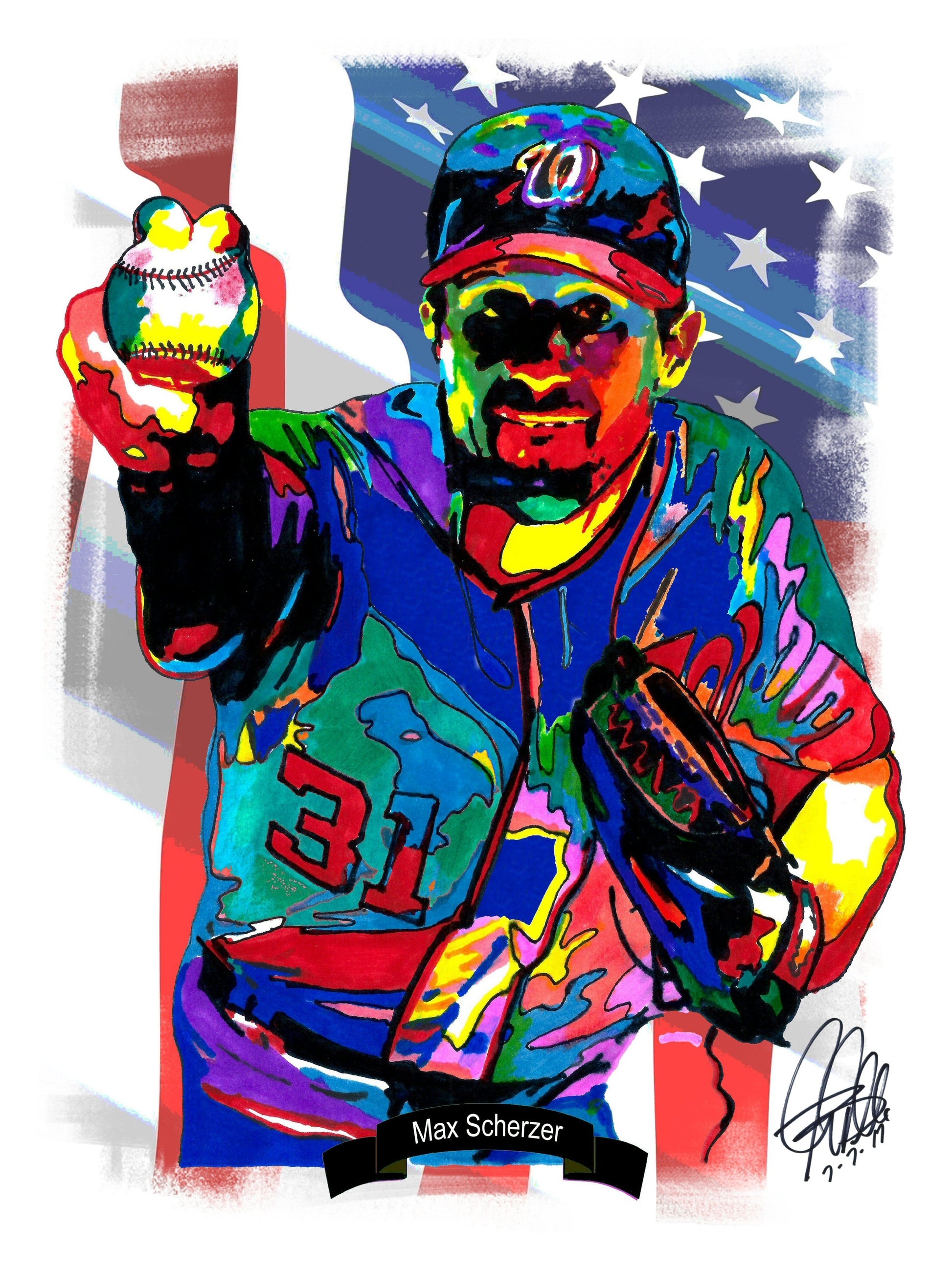 Print from Original Ink Drawing of Max Scherzer of the Washington Nationals. Printed on 8.5"x11" Premium Gloss High Quality Photo Paper. Print is great for matting and display – Signed & Dated by Artist on front of print - comes with Certificate of Authenticity with Your Name - will be shipped inside 12"x12"x1" sturdy container.
