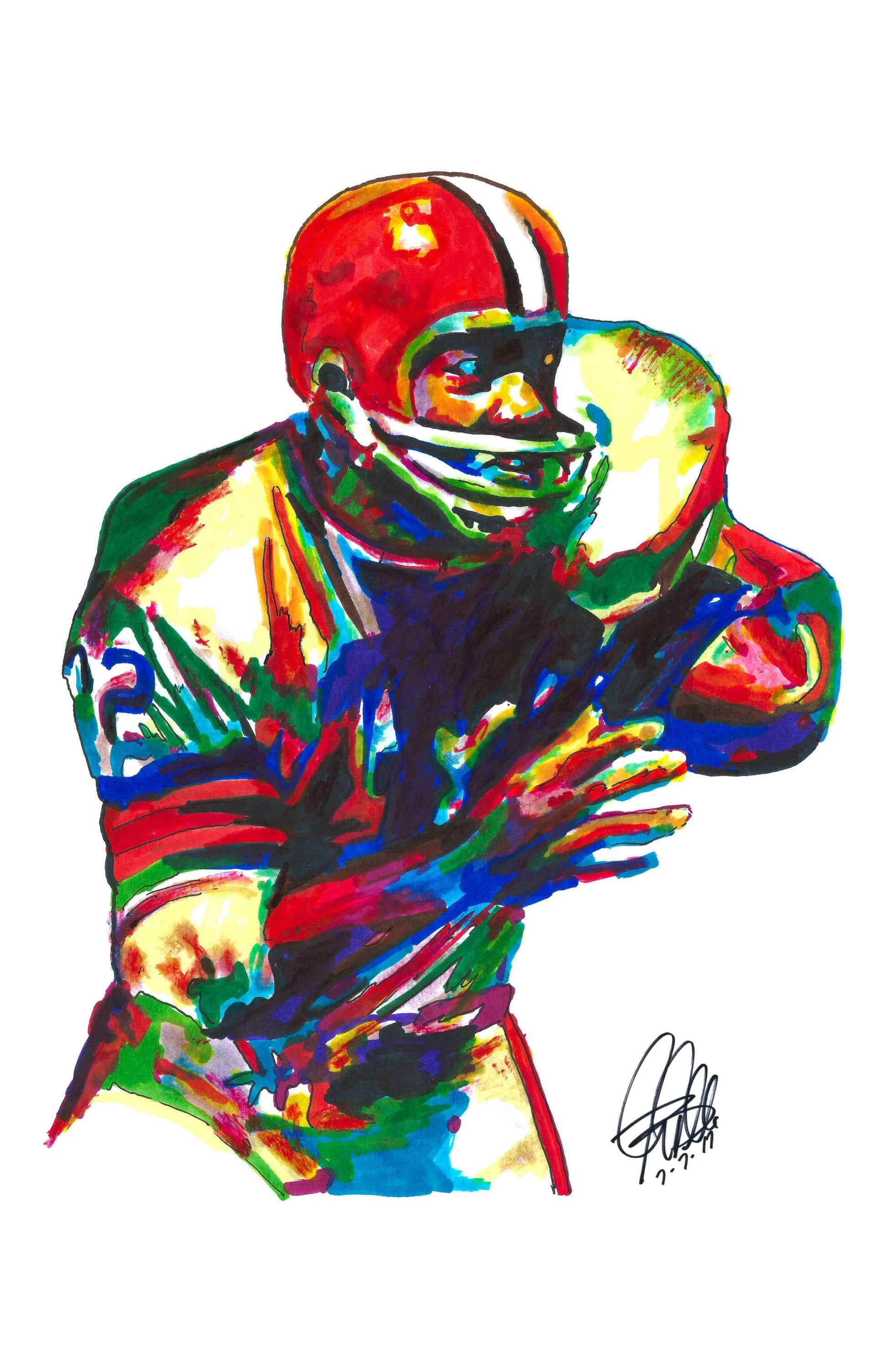 Print from Original Ink Drawing of Jim Brown of the Cleveland Browns. Printed on 11"x17" Premium Gloss High Quality Photo Paper. Print is great for matting and display – Signed & Dated by Artist on front of print - comes with Certificate of Authenticity with Your Name - will be shipped inside 3 x 30" 2 Mil Industrial Poly Bag & 2" x 19" Kraft Mailing Tubes with End Caps - .070: thick