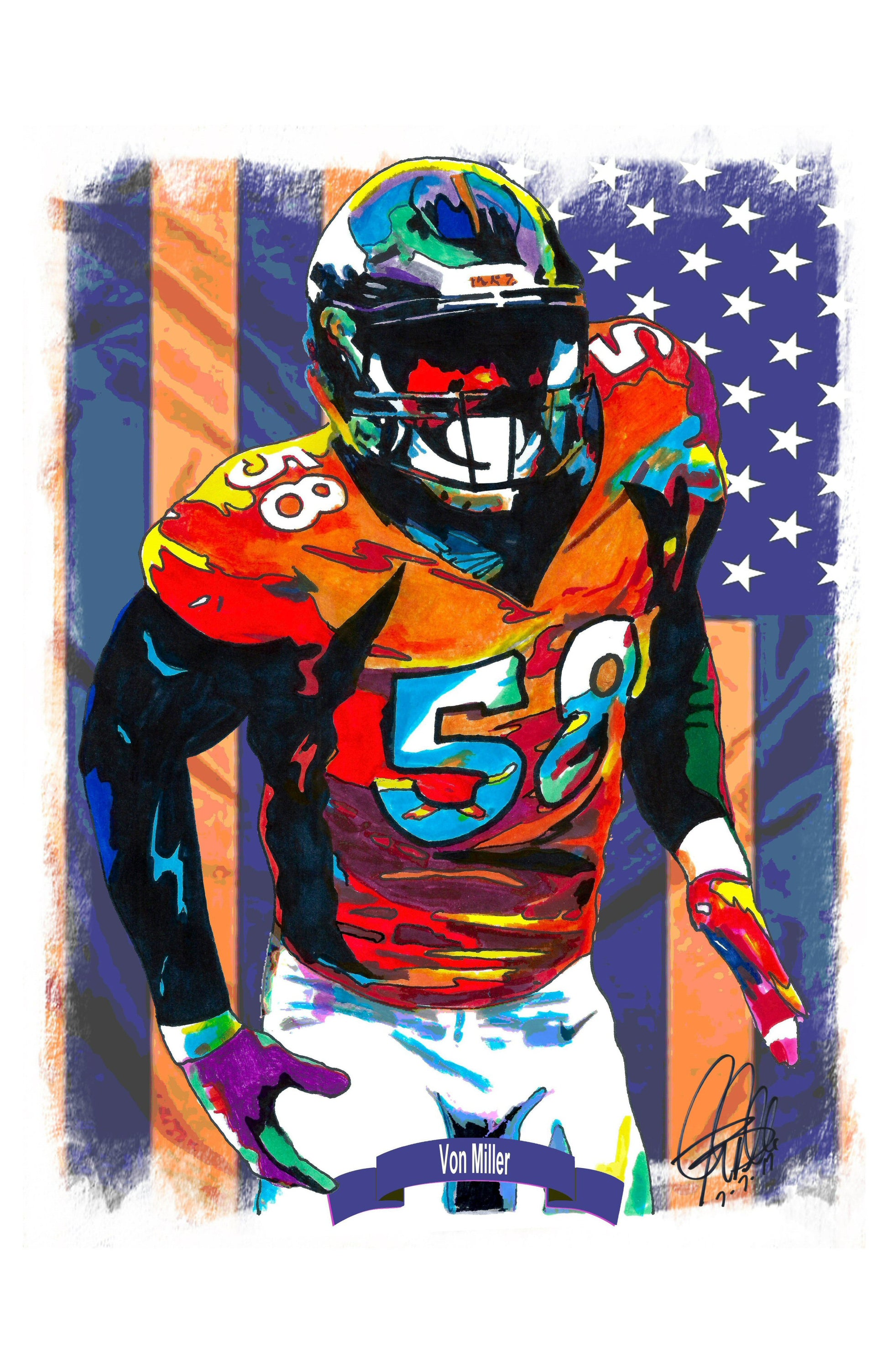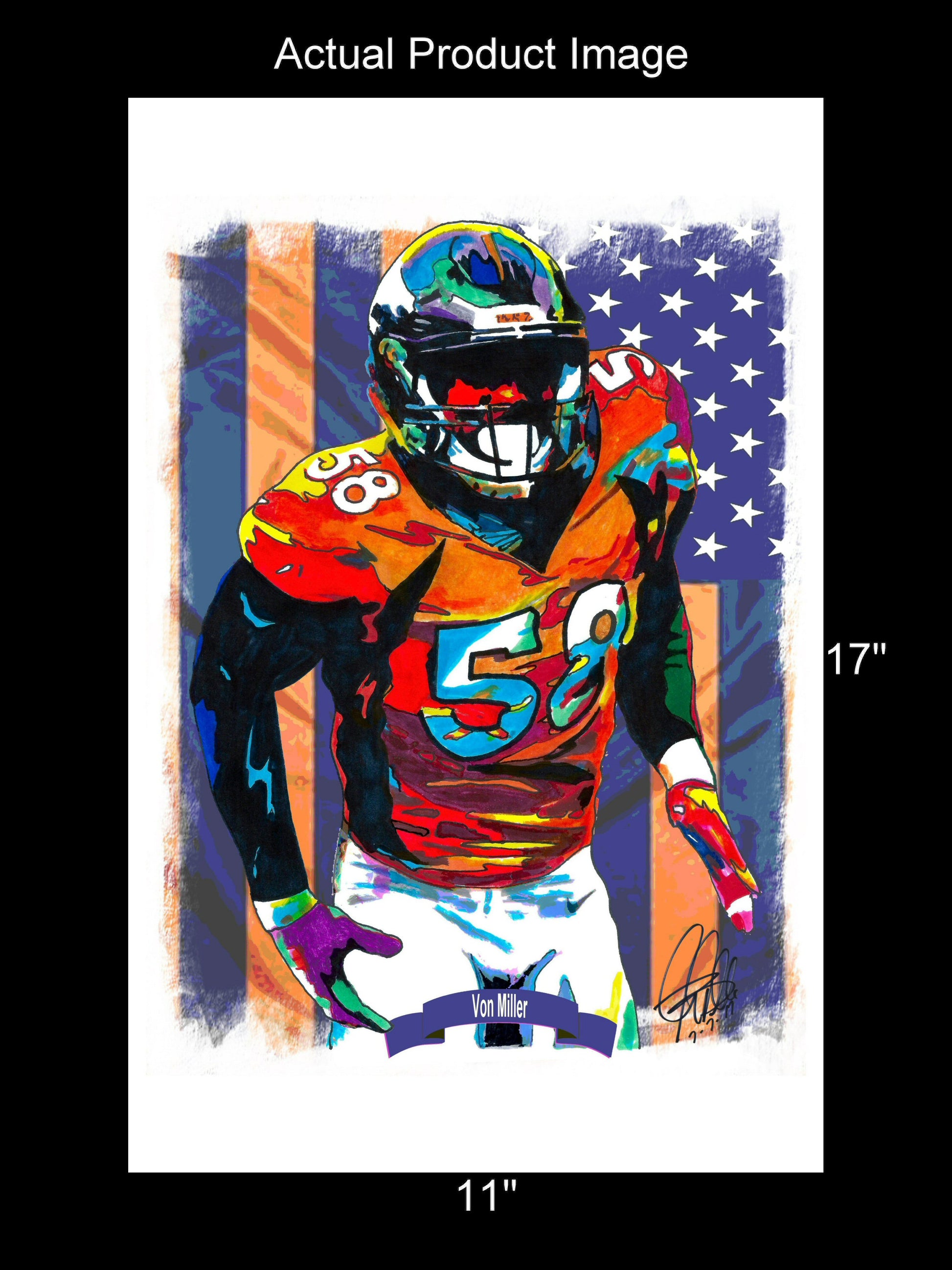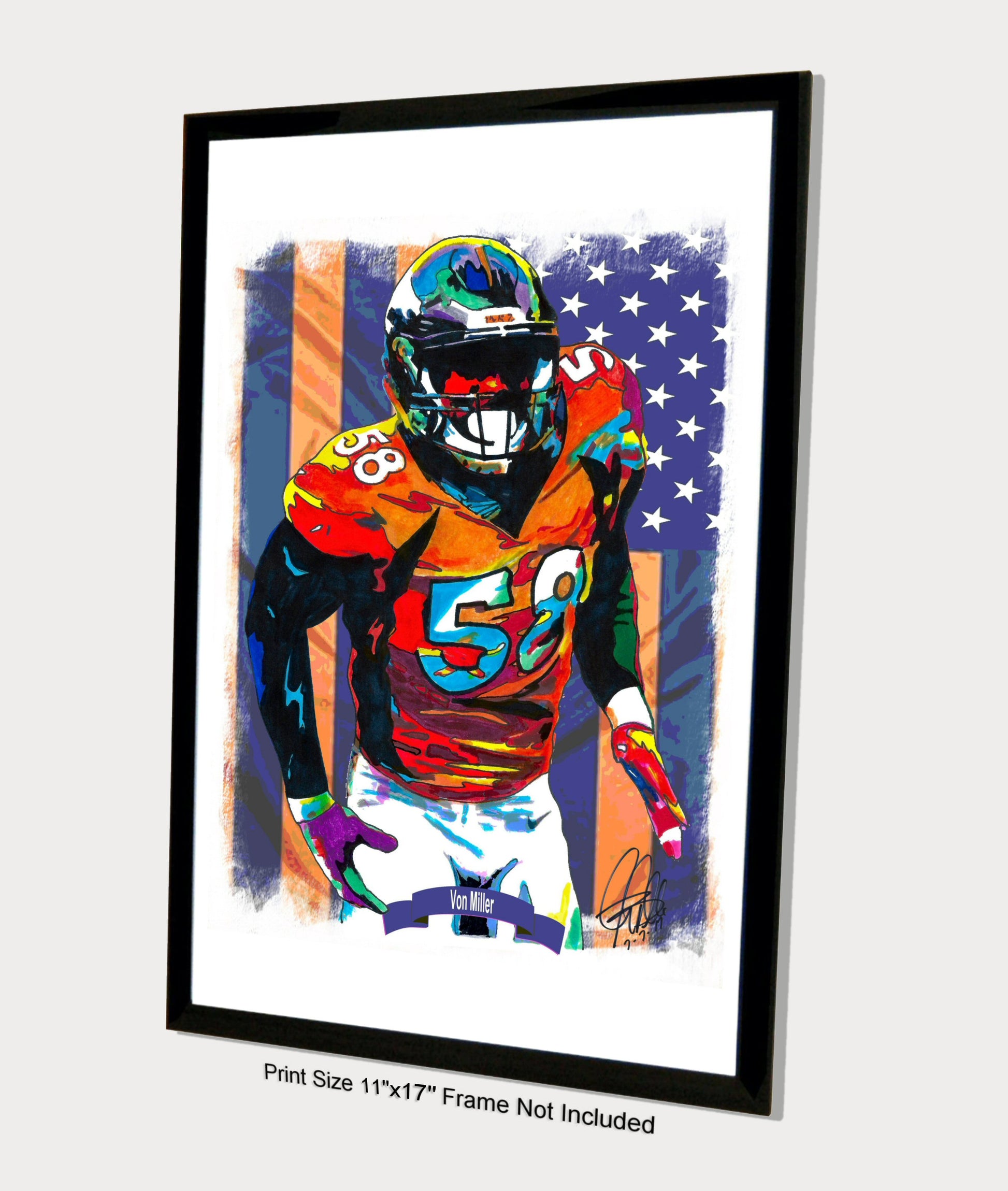Von Miller Denver Broncos Football Sports Print Poster Wall Art 11x17