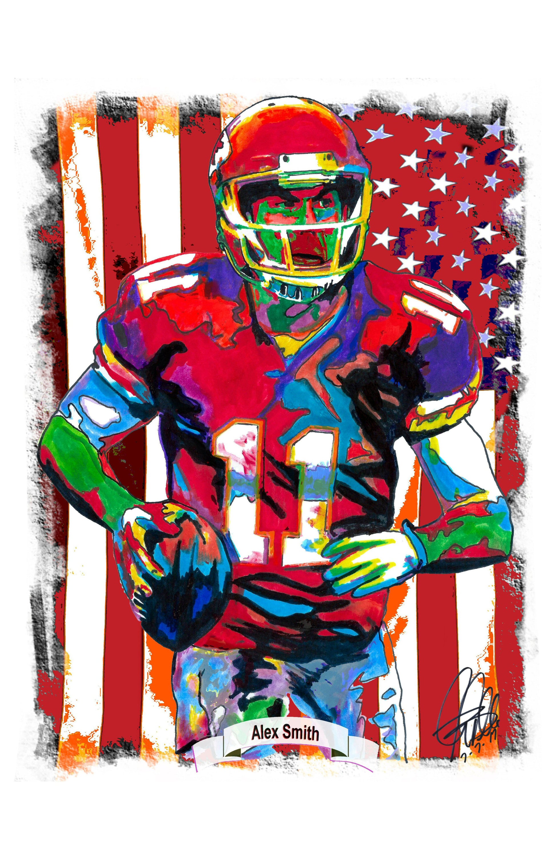 Print from Original Ink Drawing of Alex Smith of the Kansas City Chiefs. Printed on 11"x17" Premium Gloss High Quality Photo Paper. Print is great for matting and display – Signed & Dated by Artist on front of print - comes with Certificate of Authenticity with Your Name - will be shipped inside 3 x 30" 2 Mil Industrial Poly Bag & 2" x 19" Kraft Mailing Tubes with End Caps - .070: thick
