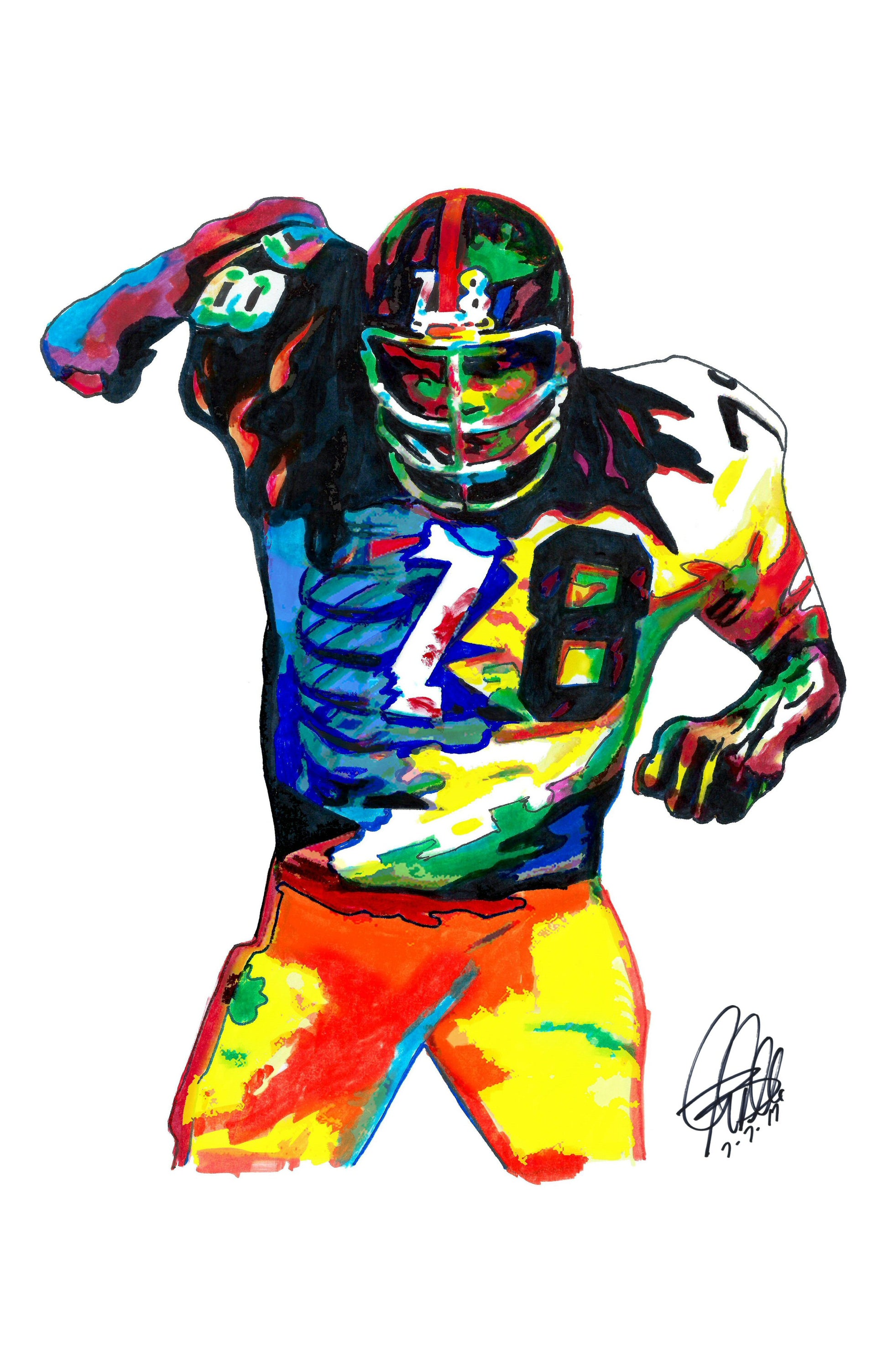 Print from Original Ink Drawing of Dwight White of the Pittsburgh Steelers. Printed on 11"x17" Premium Gloss High Quality Photo Paper. Print is great for matting and display – Signed & Dated by Artist on front of print - comes with Certificate of Authenticity with Your Name - will be shipped inside 3 x 30" 2 Mil Industrial Poly Bag & 2" x 19" Kraft Mailing Tubes with End Caps - .070: thick