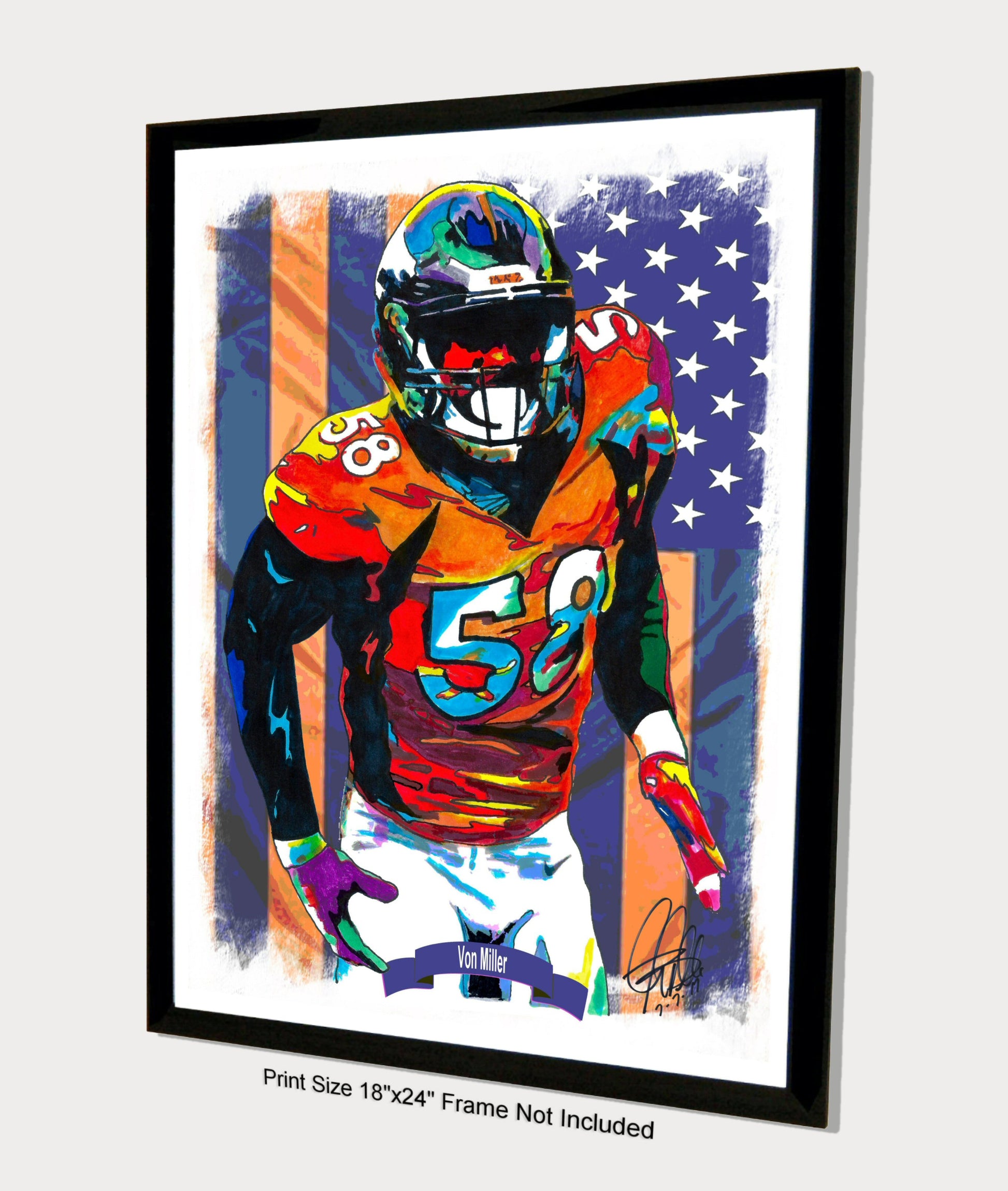 Von Miller of the Denver Broncos Football Sports Print Poster Wall Art 18x24