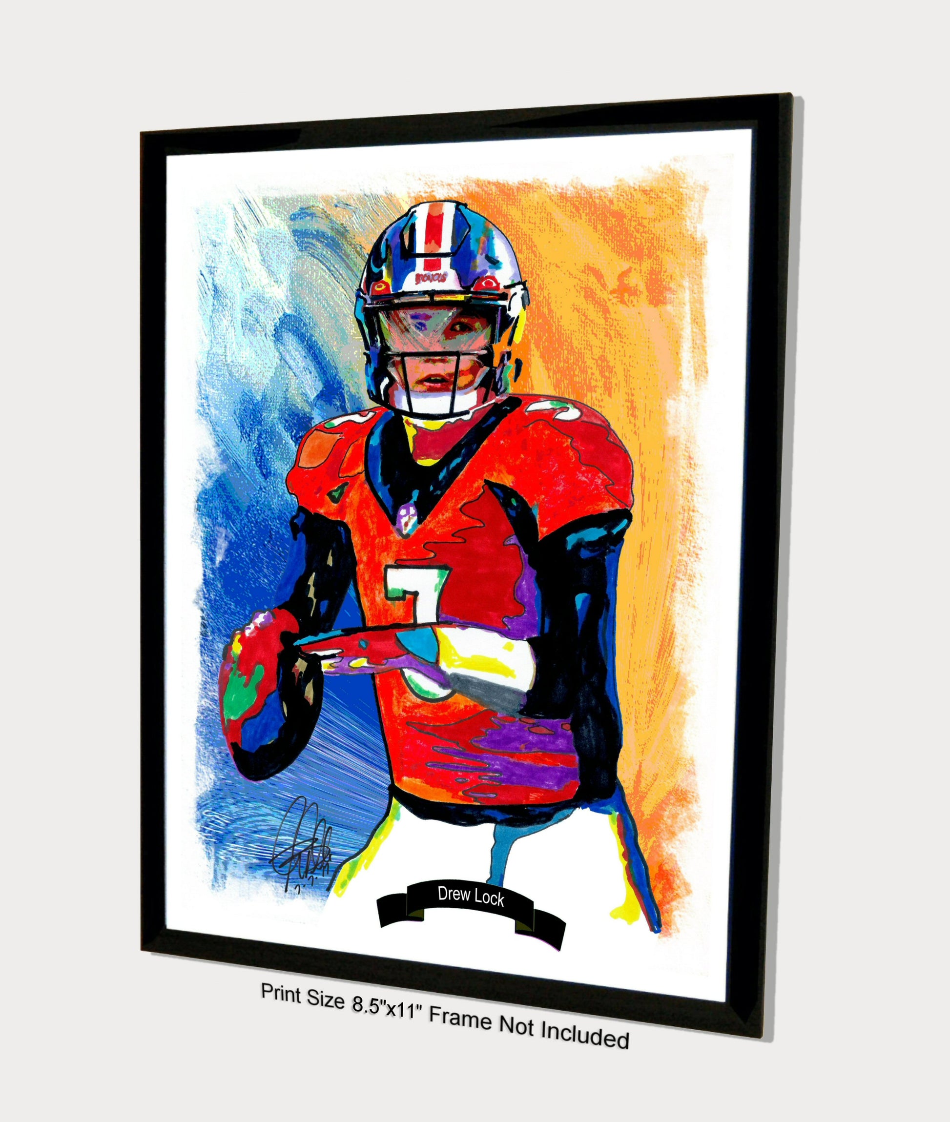 Drew Lock Denver Broncos Quarterback Football Art Poster Print 8.5x11