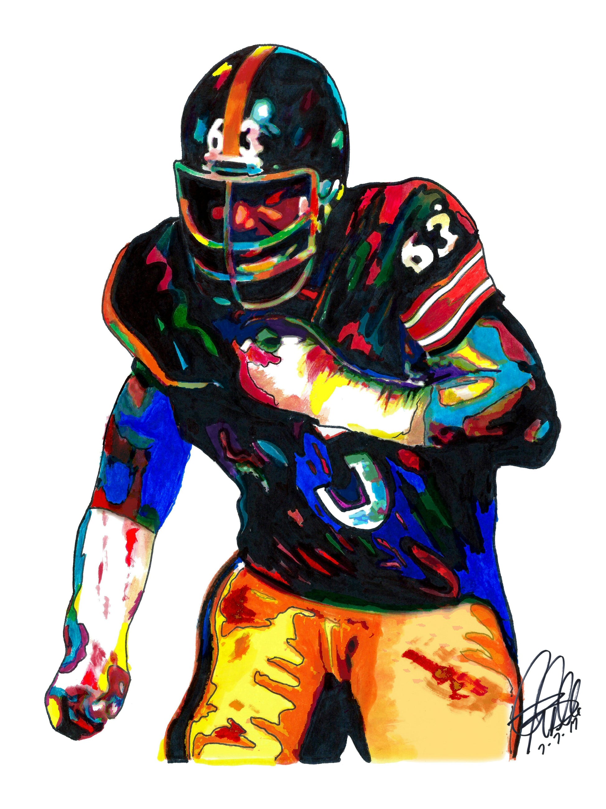 Print from Original Ink Drawing of Ernie Holmes of the Pittsburgh Steelers. Printed on 8.5"x11" Premium Gloss High Quality Photo Paper. Print is great for matting and display – Signed & Dated by Artist on front of print - comes with Certificate of Authenticity with Your Name - will be shipped inside 12"x12"x1" sturdy container.