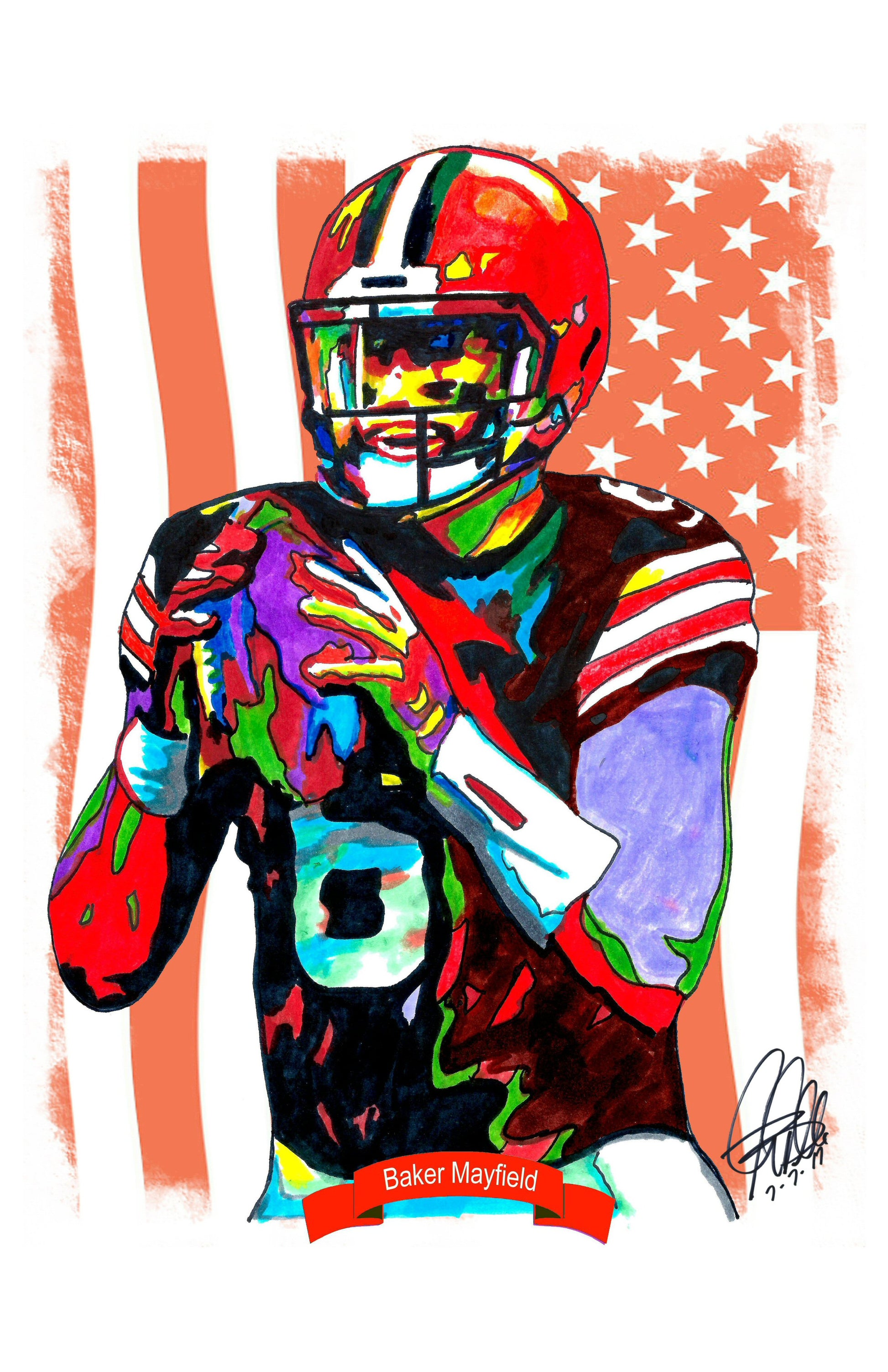 Print from Original Ink Drawing of Baker Mayfield of Cleveland Browns. Printed on 11"x17" Premium Gloss High Quality Photo Paper. Print is great for matting and display – Signed & Dated by Artist on front of print - comes with Certificate of Authenticity with Your Name - will be shipped inside 3 x 30" 2 Mil Industrial Poly Bag & 2" x 19" Kraft Mailing Tubes with End Caps - .070: thick