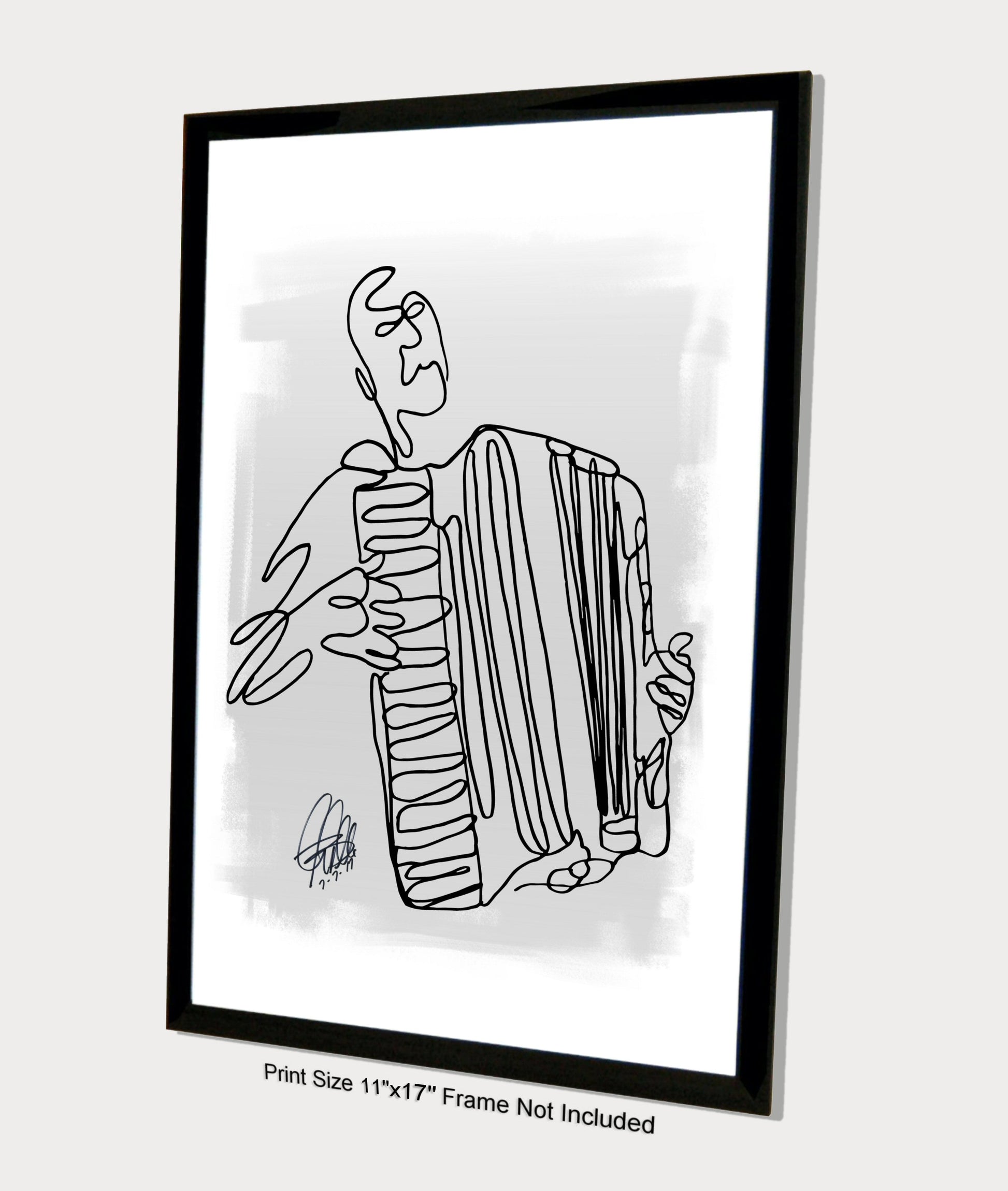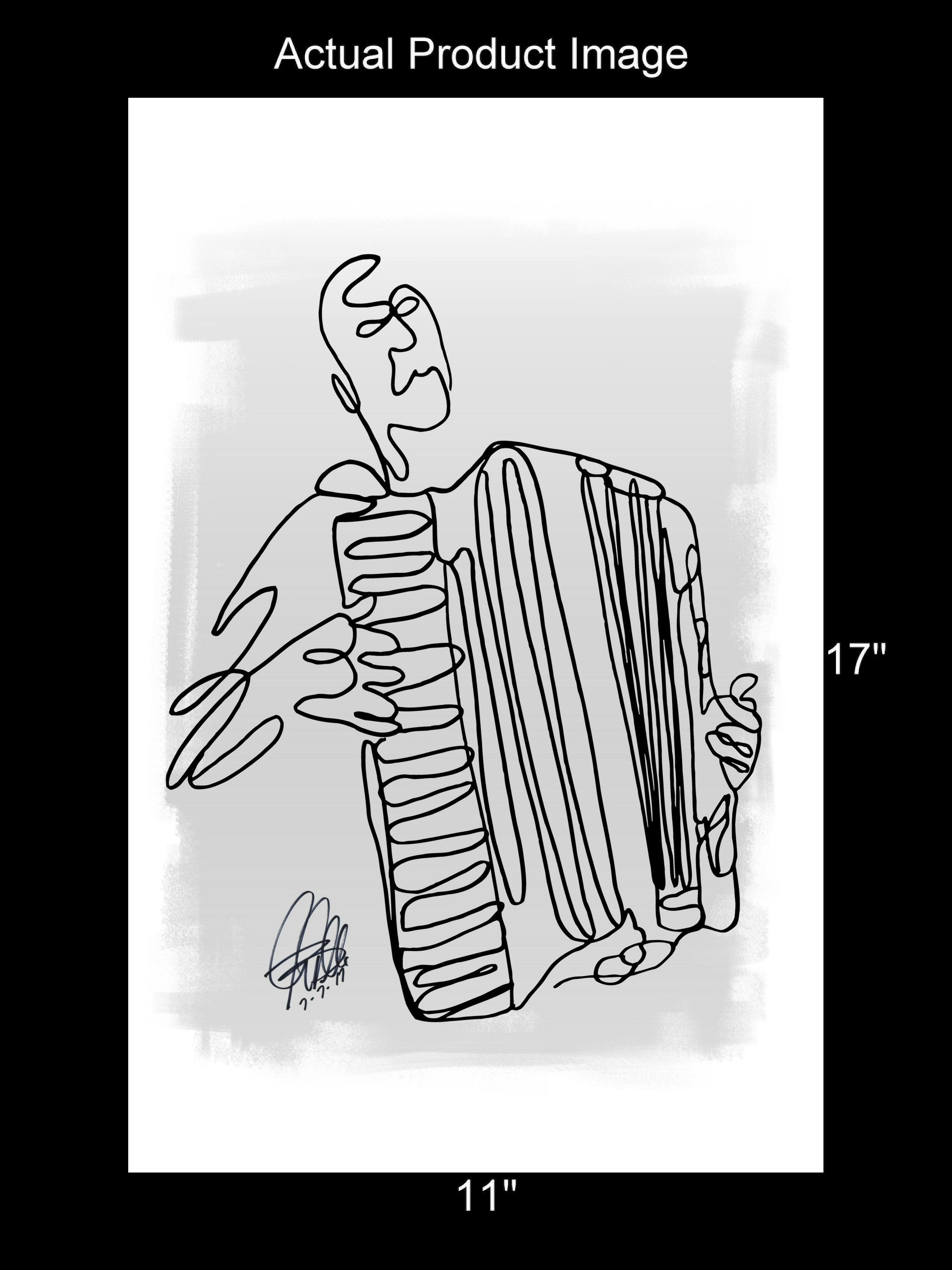 Print from Original Ink Drawing of Accordion Player. Printed on 11"x17" Premium Gloss High Quality Photo Paper. Print is great for matting and display – Signed & Dated by Artist on front of print - comes with Certificate of Authenticity with Your Name - will be shipped inside 3 x 30" 2 Mil Industrial Poly Bag & 2" x 19" Kraft Mailing Tubes with End Caps - .070: thick
