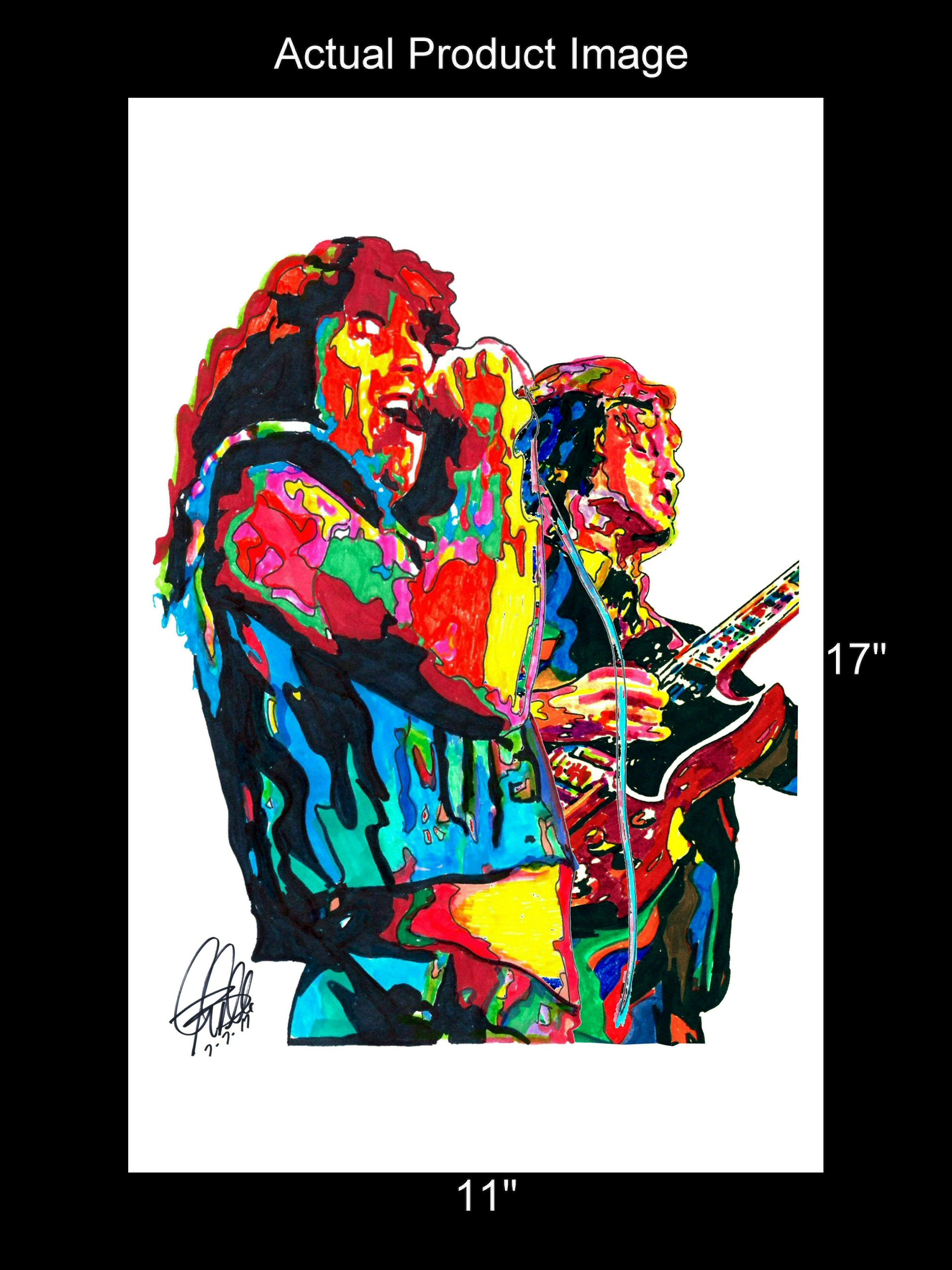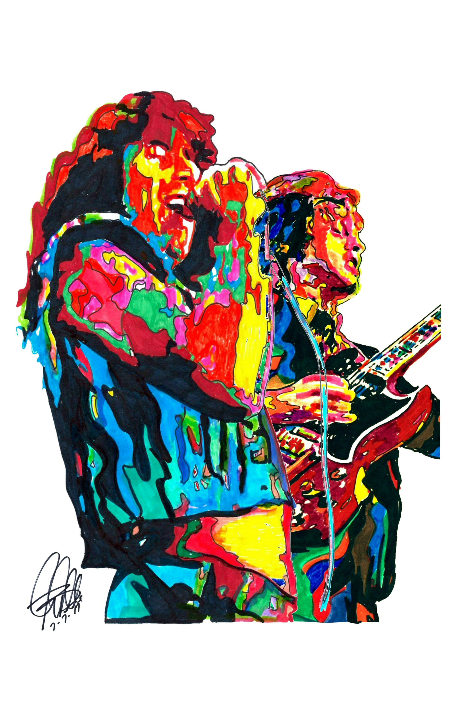 Print from Original Ink Drawing of Bon Scott & Angus Young of AC/DC. Printed on 11"x17" Premium Gloss High Quality Photo Paper. Print is great for matting and display – Signed & Dated by Artist on front of print - comes with Certificate of Authenticity with Your Name - will be shipped inside 3 x 30" 2 Mil Industrial Poly Bag & 2" x 19" Kraft Mailing Tubes with End Caps - .070: thick