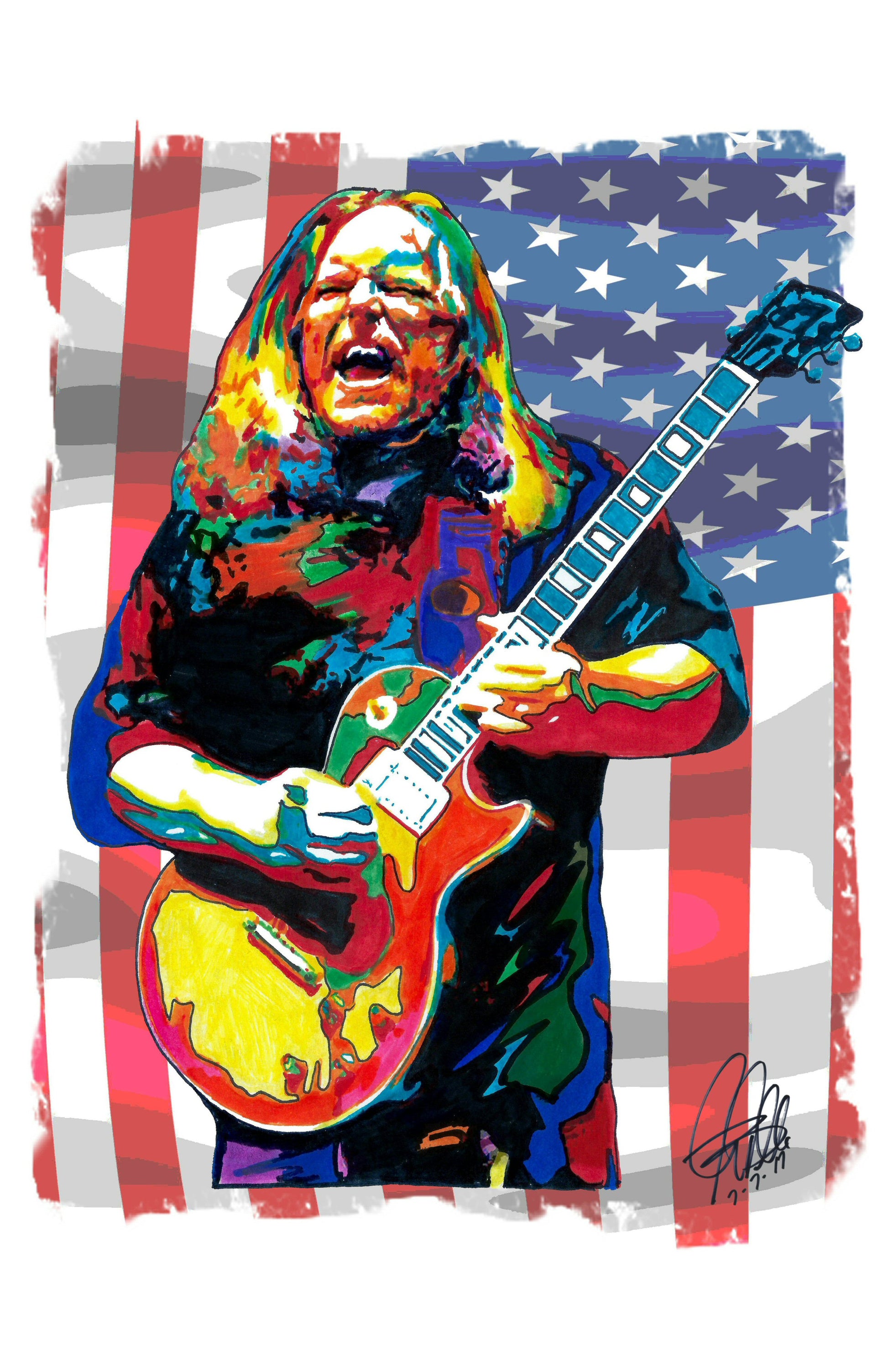 Print from Original Ink Drawing of Warren Haynes. Printed on 11"x17" Premium Gloss High Quality Photo Paper. Print is great for matting and display – Signed & Dated by Artist on front of print - comes with Certificate of Authenticity with Your Name - will be shipped inside 3 x 30" 2 Mil Industrial Poly Bag & 2" x 19" Kraft Mailing Tubes with End Caps - .070: thick
