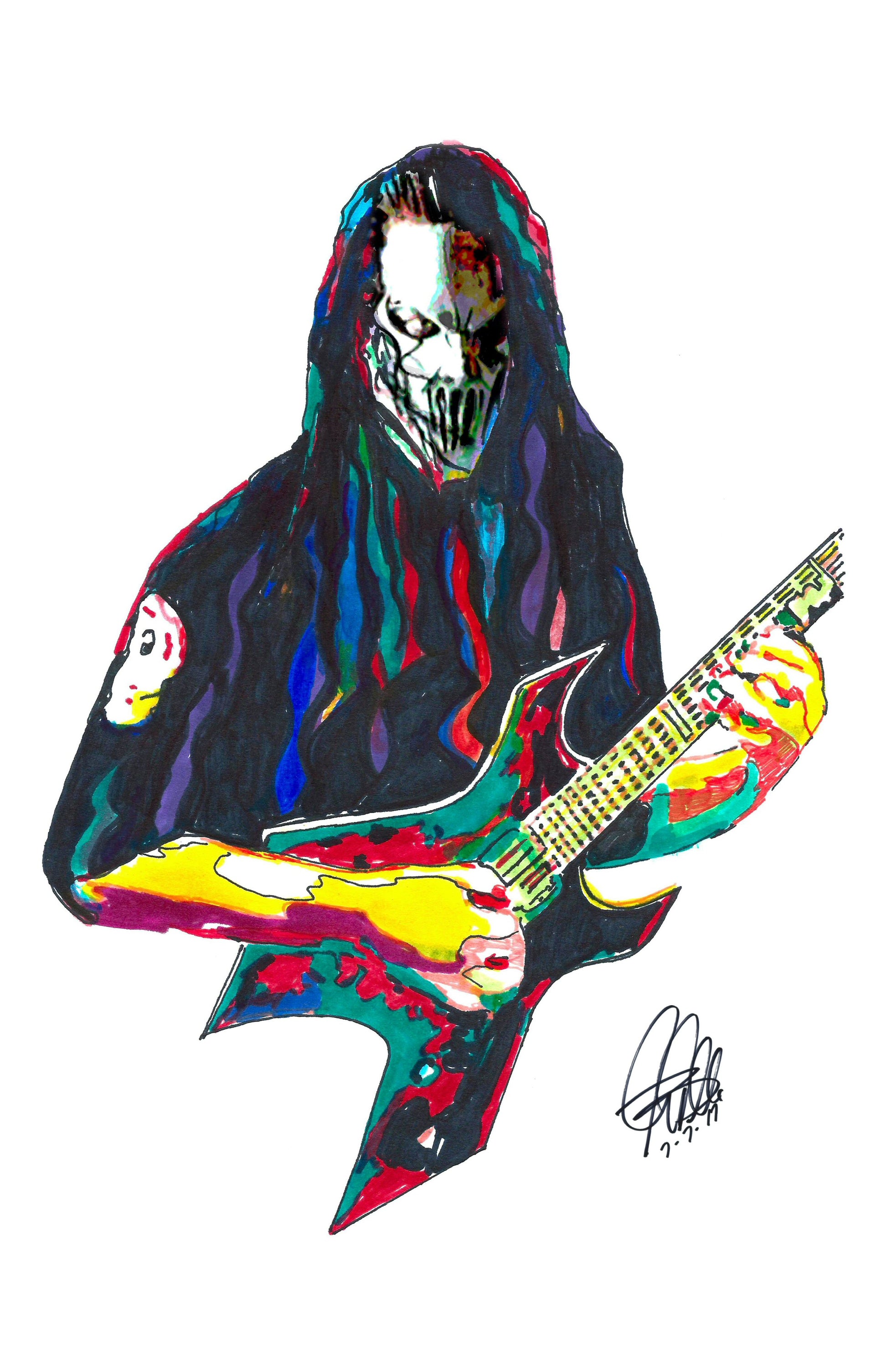 Print from Original Ink Drawing of Mick Thomson of Slipknot. Printed on 11"x17" Premium Gloss High Quality Photo Paper. Print is great for matting and display – Signed & Dated by Artist on front of print - comes with Certificate of Authenticity with Your Name - will be shipped inside 3 x 30" 2 Mil Industrial Poly Bag & 2" x 19" Kraft Mailing Tubes with End Caps - .070: thick