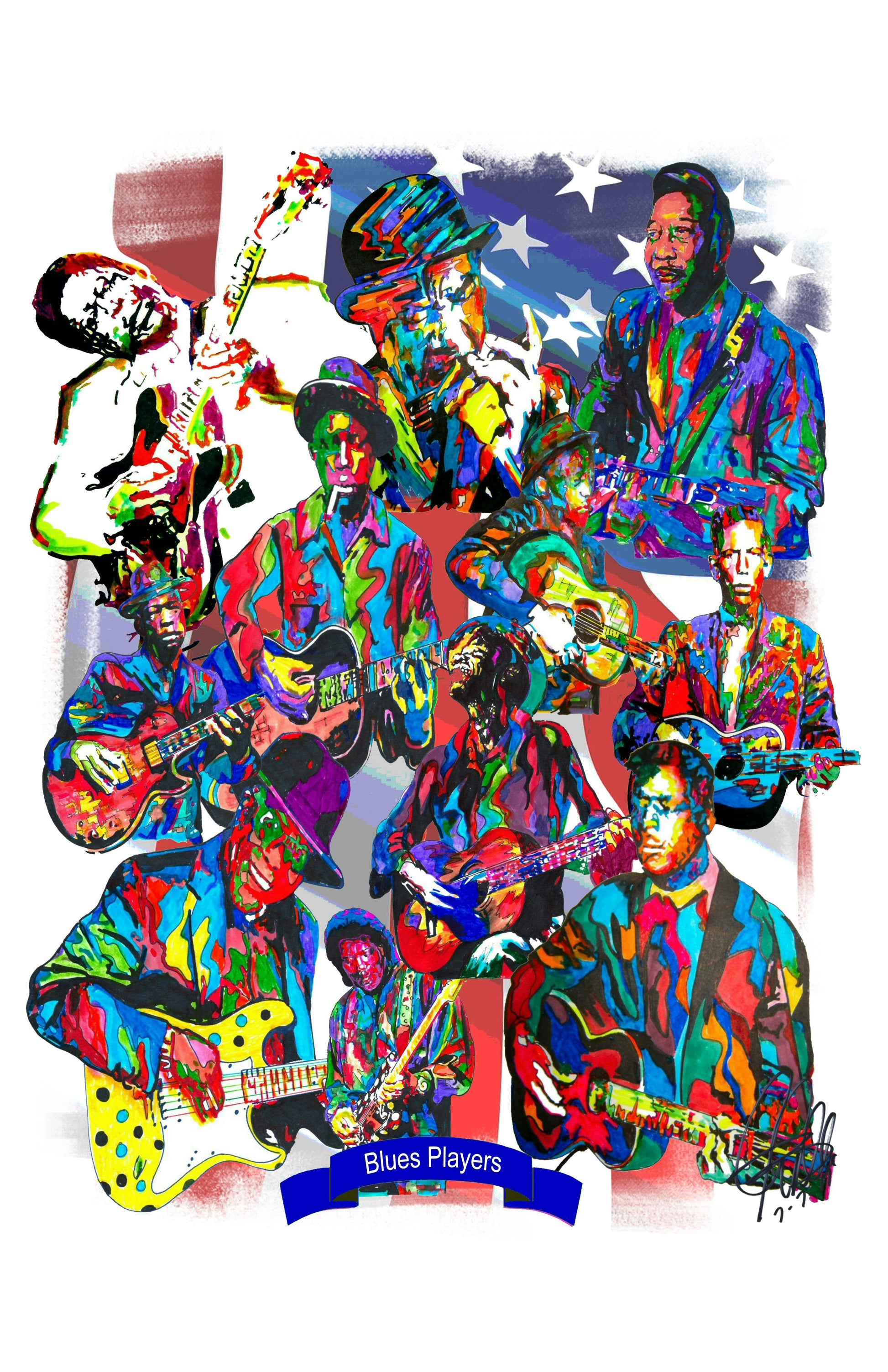 Print from Original Ink Drawing of Blues Players - BB King - Sonny Boy Williamson - Muddy Waters - Robert Johnson - Son House - Lightnin' Hopkins - Buddy Guy - Blind Willie Johnson - Charley Patton - John Lee Hooker. Printed on 11"x17" Premium Gloss High Quality Photo Paper. Print is great for matting and display – Signed & Dated by Artist on front of print - comes with Certificate of Authenticity with Your Name - will be shipped inside 3 x 30" 2 Mil Industrial Poly Bag & 2" x 19" Kraft Mailing Tubes with End Caps - .070: thick