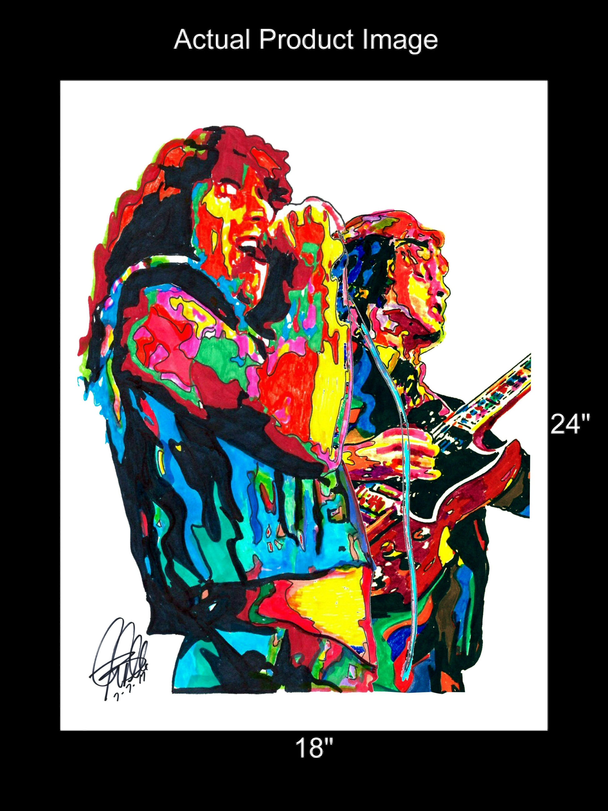 Print from Original Ink Drawing of Bon Scott & Angus Young of AC/DC. Printed on 18"x24" Premium Gloss High Quality Photo Paper. Print is great for matting and display – Signed & Dated by Artist on front of print - comes with Certificate of Authenticity with Your Name - will be shipped inside 3 x 30" 2 Mil Industrial Poly Bag & 2" x 19" Kraft Mailing Tubes with End Caps - .070: thick