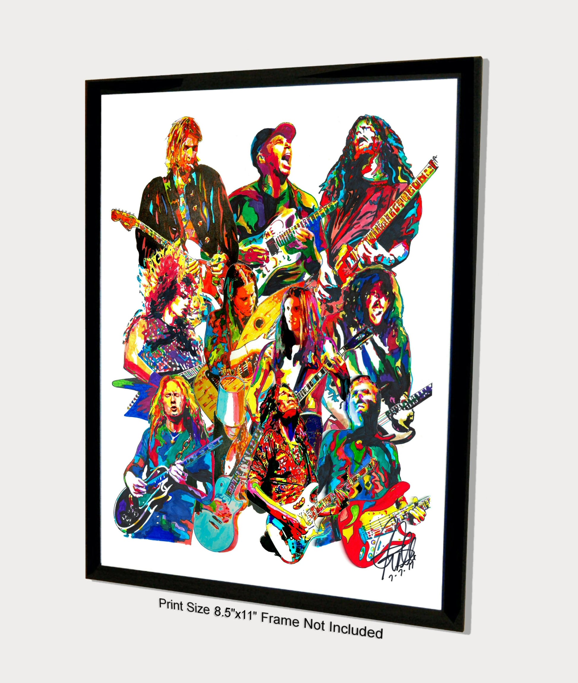 90s Guitar Players Dimebag Buckethead Cobain Music Poster Print Wall Art 8.5x11