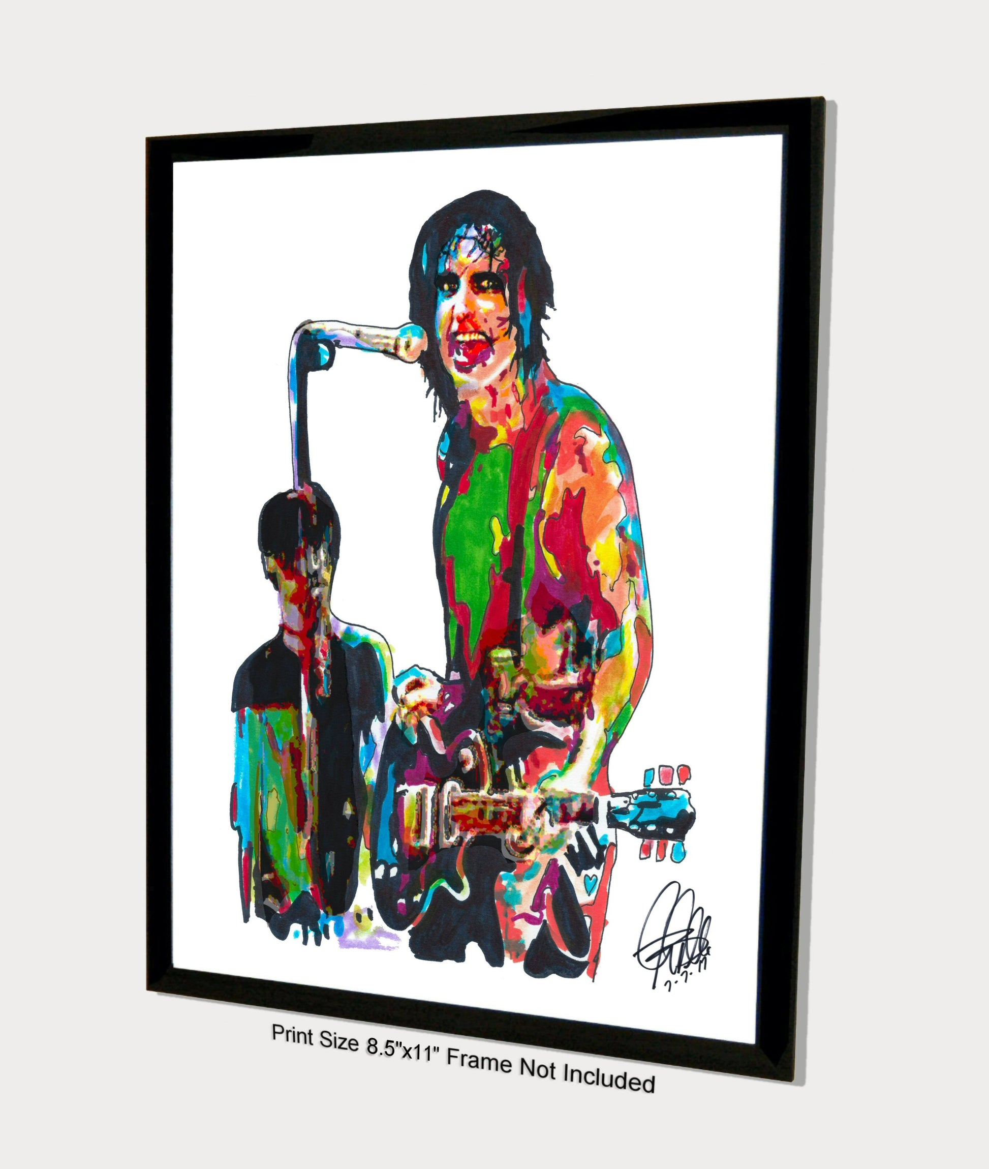 Print from Original Ink Drawing of Trent Reznor of Nine Inch Nails. Printed on 8.5"x11" Premium Gloss High Quality Photo Paper. Print is great for matting and display – Signed & Dated by Artist on front of print - comes with Certificate of Authenticity with Your Name - will be shipped inside 12"x12"x1" sturdy container.