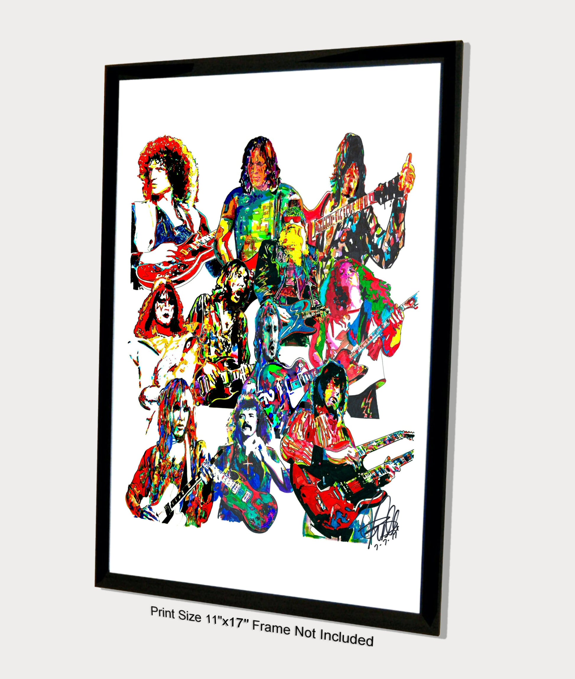 70s Guitar Players Jimmy Page Duane Allman Music Print Poster Wall Art 11x17