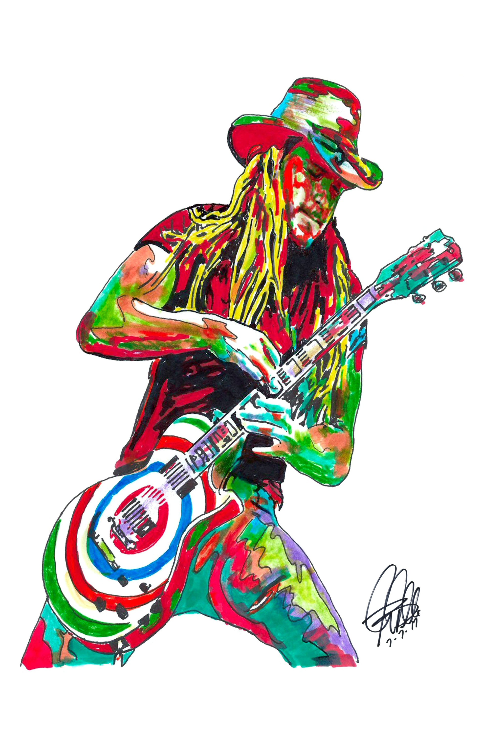 Print from Original Ink Drawing of Zakk Wyld. Printed on 11"x17" Premium Gloss High Quality Photo Paper. Print is great for matting and display – Signed & Dated by Artist on front of print - comes with Certificate of Authenticity with Your Name - will be shipped inside 3 x 30" 2 Mil Industrial Poly Bag & 2" x 19" Kraft Mailing Tubes with End Caps - .070: thick