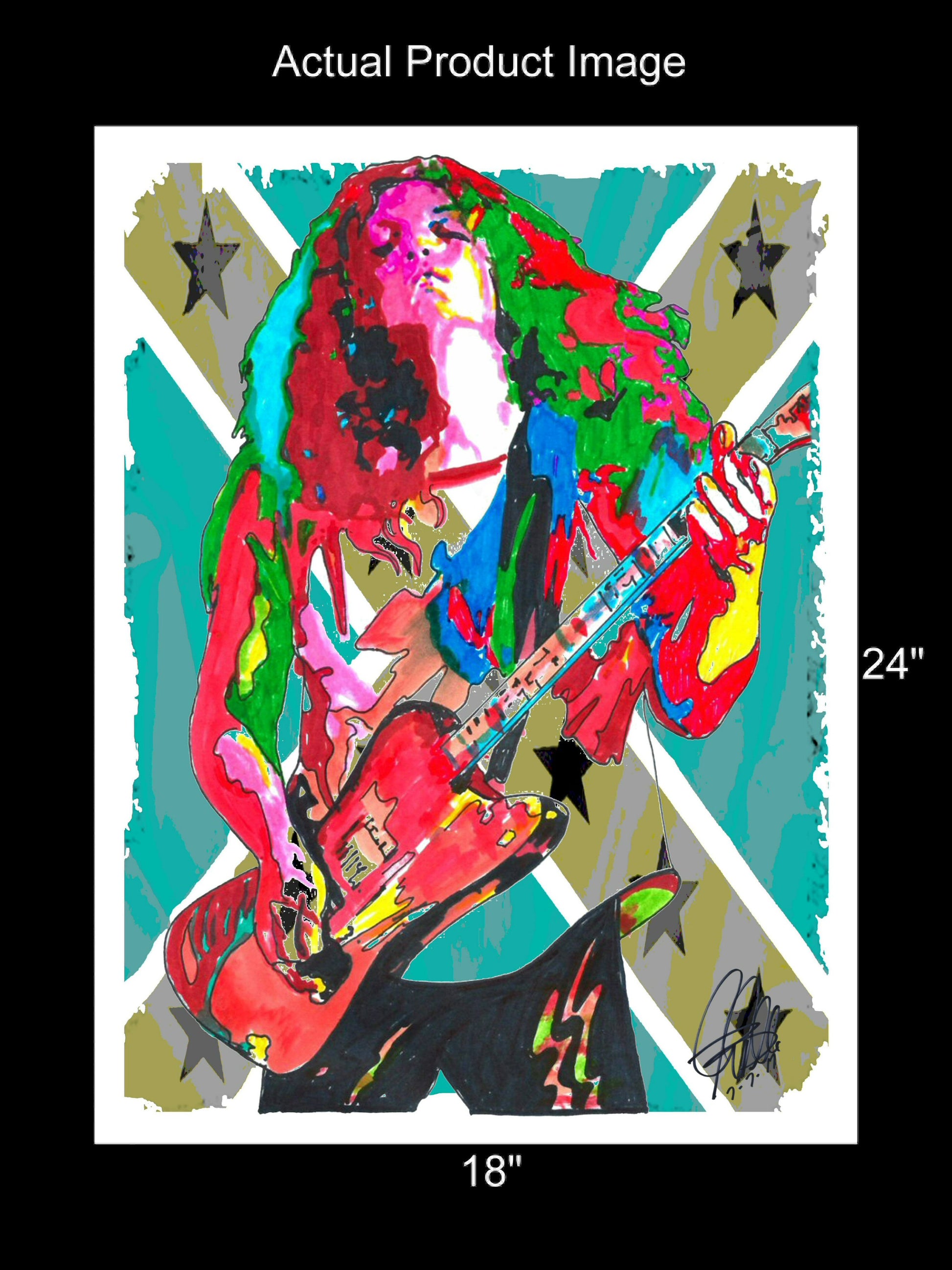 Print from Original Ink Drawing of Allen Collins of Lynyrd Skynyrd. Printed on 18"x24" Premium Gloss High Quality Photo Paper. Print is great for matting and display – Signed & Dated by Artist on front of print - comes with Certificate of Authenticity with Your Name - will be shipped inside 3 x 30" 2 Mil Industrial Poly Bag & 2" x 19" Kraft Mailing Tubes with End Caps - .070: thick