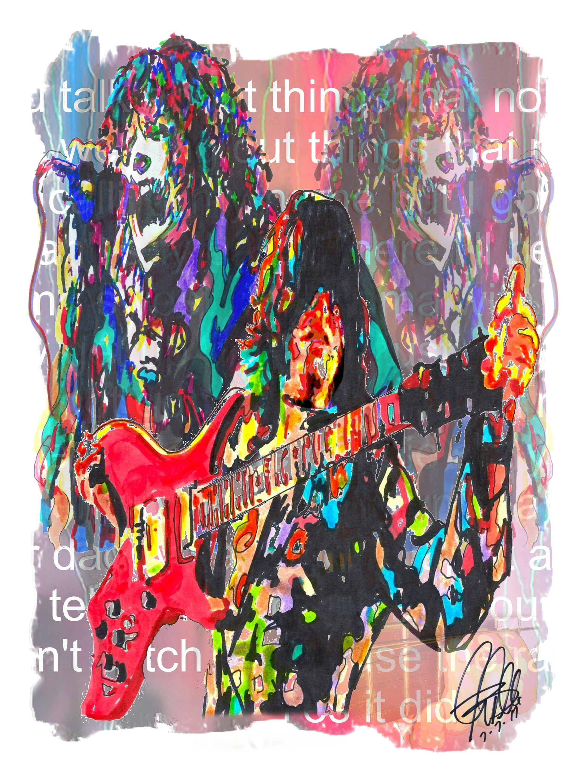 Print from Original Ink Drawing of Aerosmith. Printed on 18"x24" Premium Gloss High Quality Photo Paper. Print is great for matting and display – Signed & Dated by Artist on front of print - comes with Certificate of Authenticity with Your Name - will be shipped inside 3 x 30" 2 Mil Industrial Poly Bag & 2" x 19" Kraft Mailing Tubes with End Caps - .070: thick