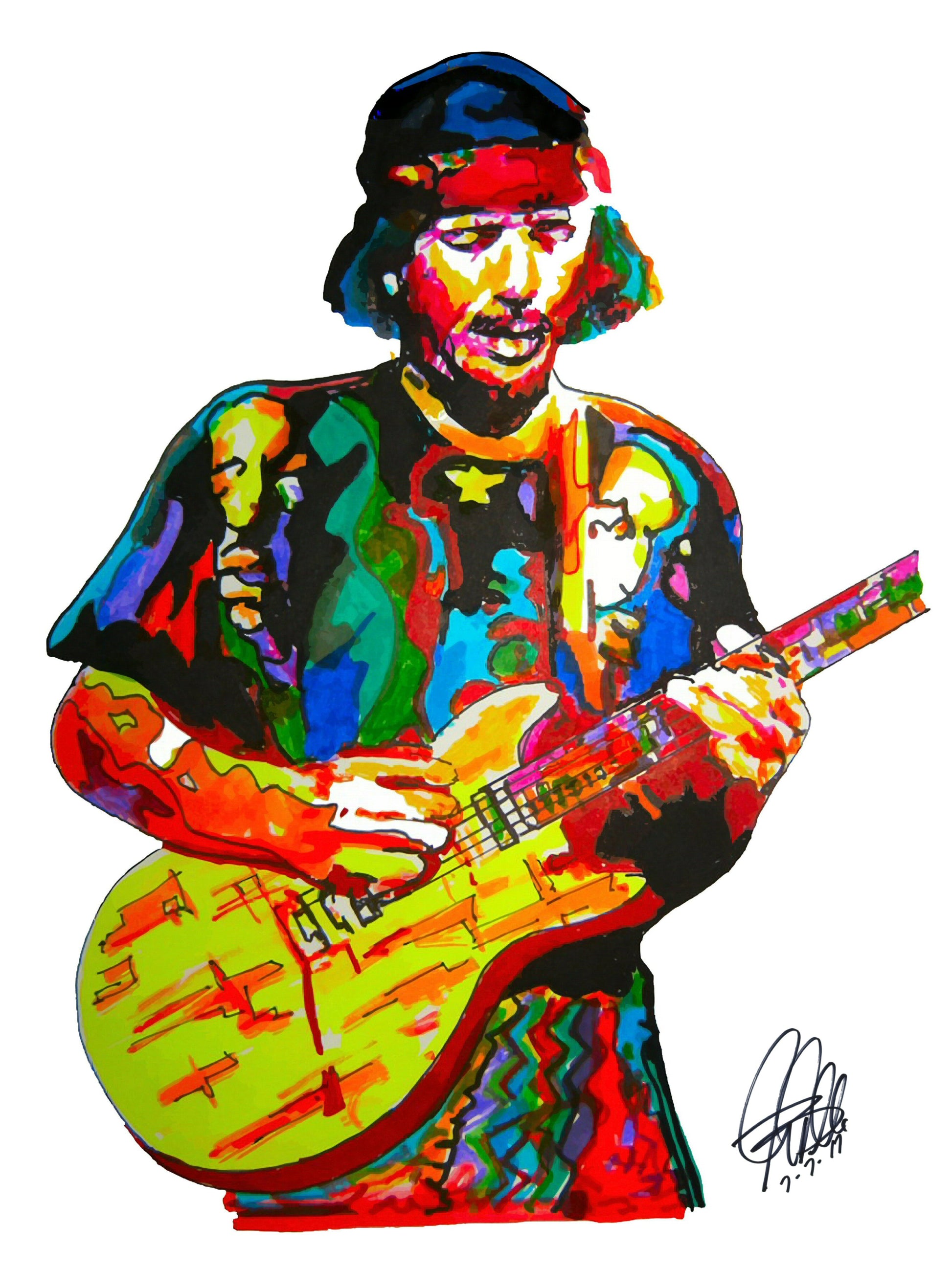 Print from Original Ink Drawing of Carlos Santana. Printed on 18"x24" Premium Gloss High Quality Photo Paper. Print is great for matting and display – Signed & Dated by Artist on front of print - comes with Certificate of Authenticity with Your Name - will be shipped inside 3 x 30" 2 Mil Industrial Poly Bag & 2" x 19" Kraft Mailing Tubes with End Caps - .070: thick