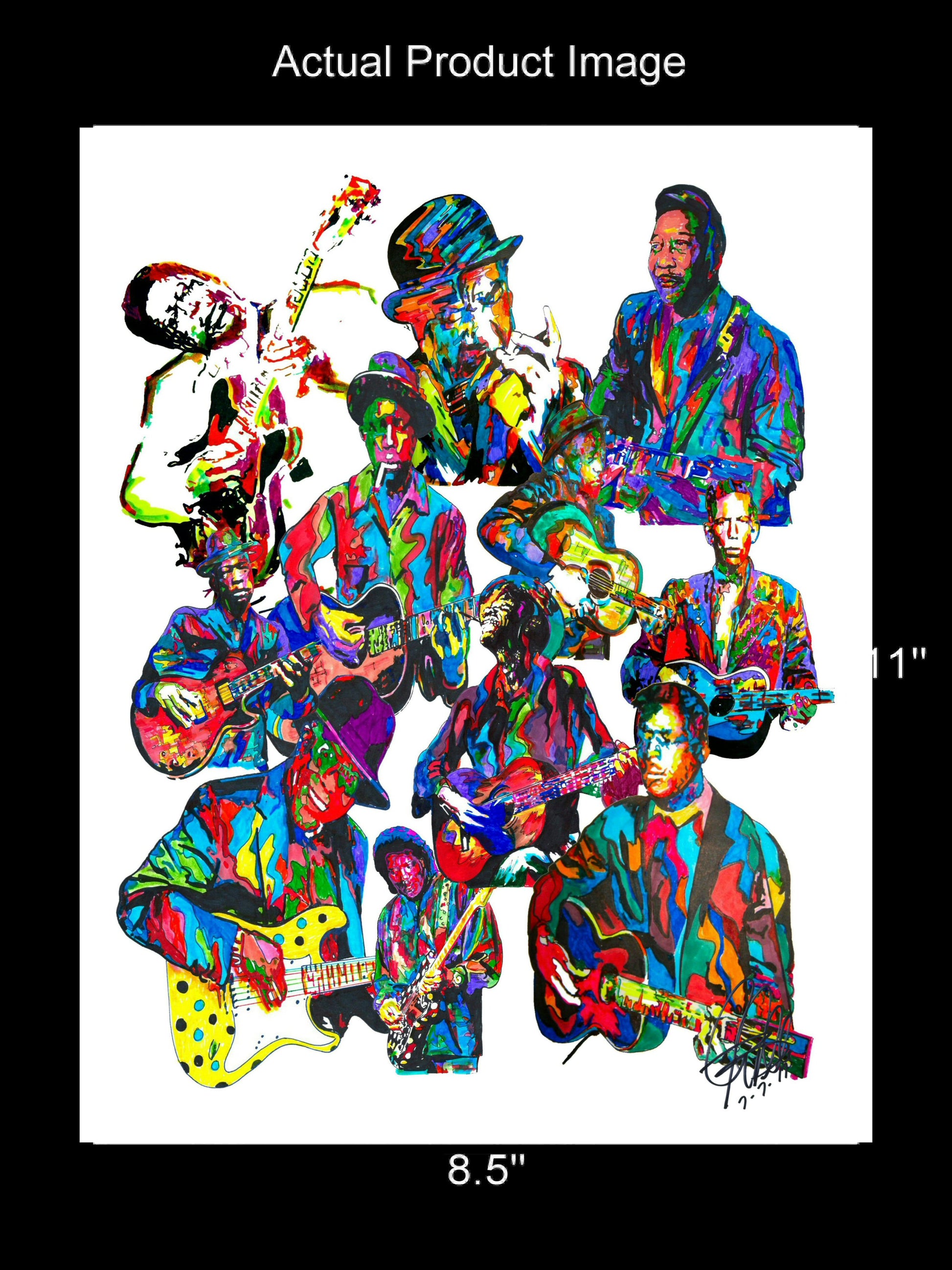 Print from Original Ink Drawing of Blues Players. Printed on 8.5"x11" Premium Gloss High Quality Photo Paper. Print is great for matting and display – Signed & Dated by Artist on front of print - comes with Certificate of Authenticity with Your Name - will be shipped inside 12"x12"x1" sturdy container.