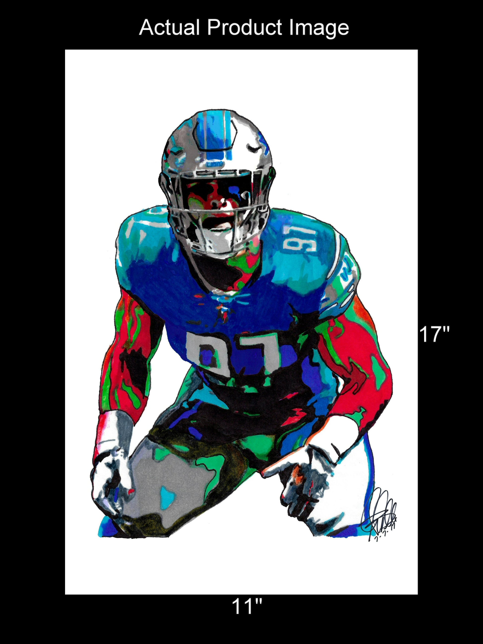 Aidan Hutchinson Detroit Lions Football Poster Print Wall Art 11x17