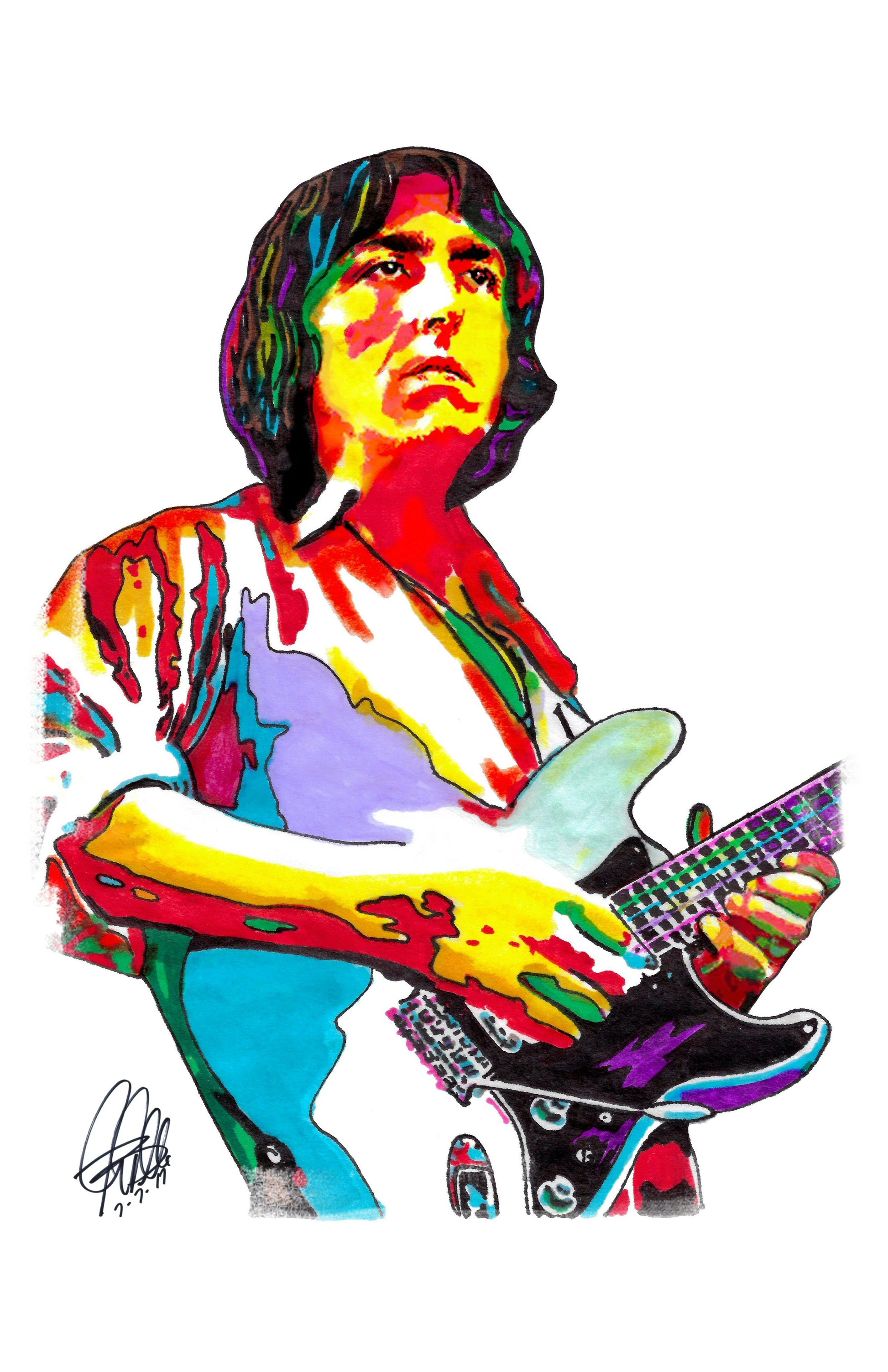 Print from Original Ink Drawing of Allan Holdsworth. Printed on 11"x17" Premium Gloss High Quality Photo Paper. Print is great for matting and display – Signed & Dated by Artist on front of print – comes with Certificate of Authenticity with Your Name - will be shipped inside 3 x 30" 2 Mil Industrial Poly Bag & 2" x 19" Kraft Mailing Tubes with End Caps - .070: thick
