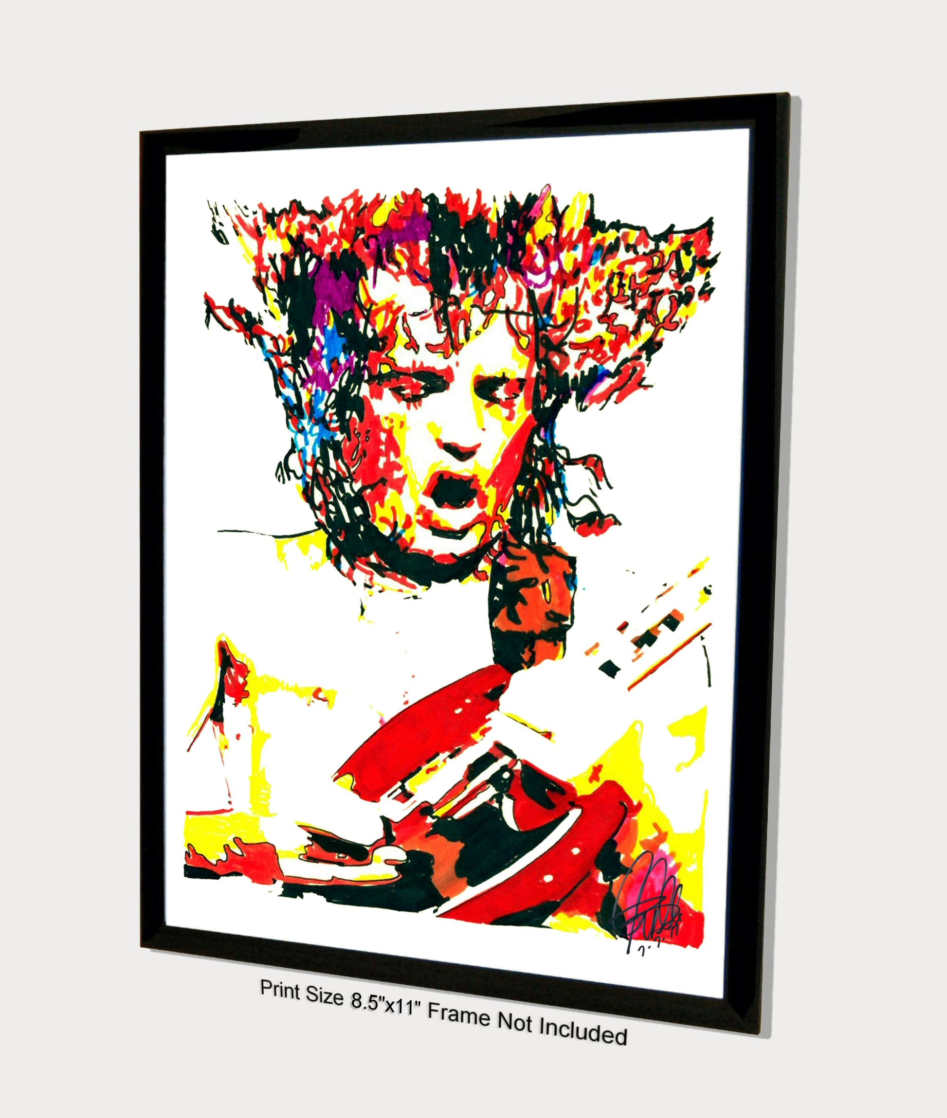 Print from Original Ink Drawing of Angus Young of AC/DC. Printed on 8.5"x11" Premium Gloss High Quality Photo Paper. Print is great for matting and display – Signed & Dated by Artist on front of print - comes with Certificate of Authenticity with Your Name - will be shipped inside 12"x12"x1" sturdy container.