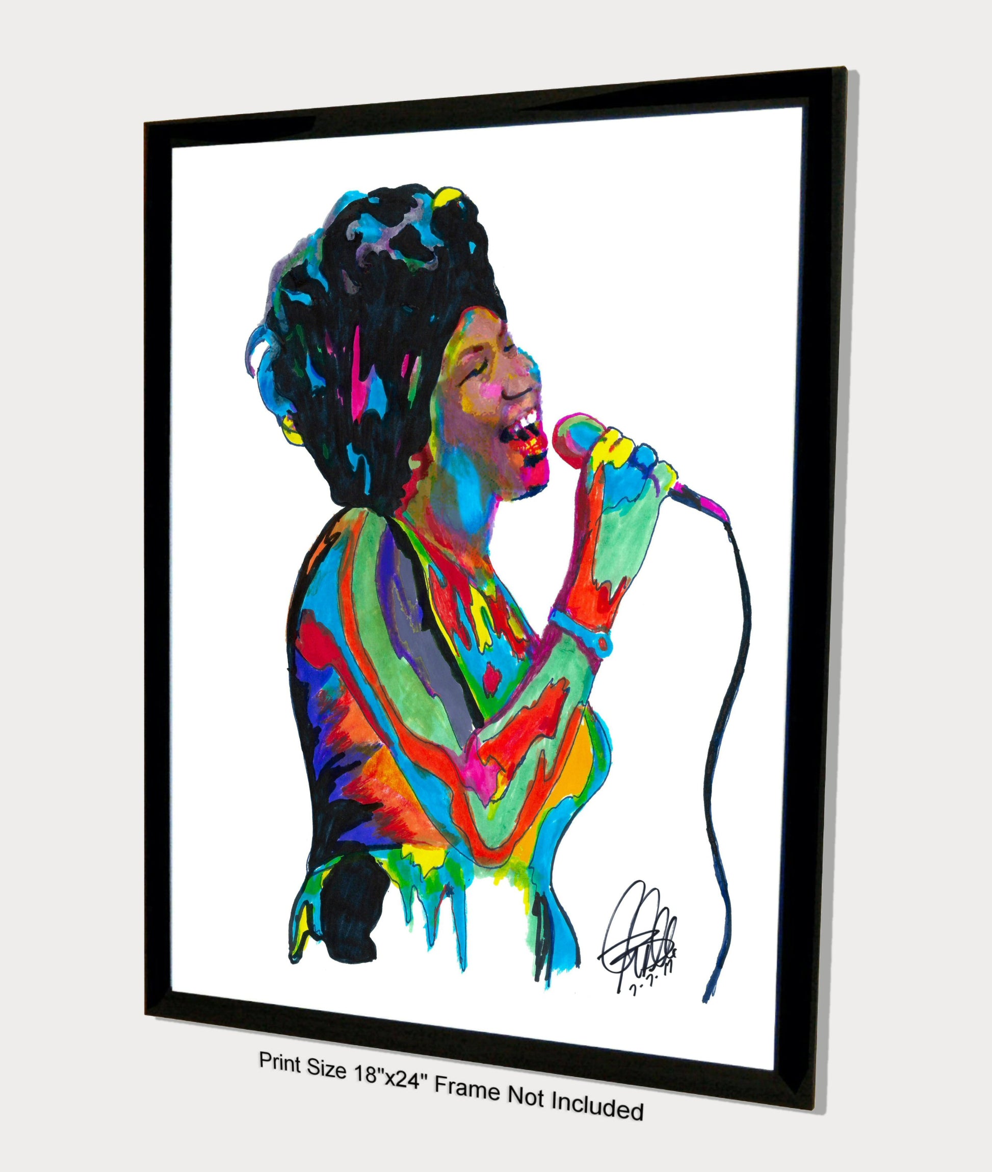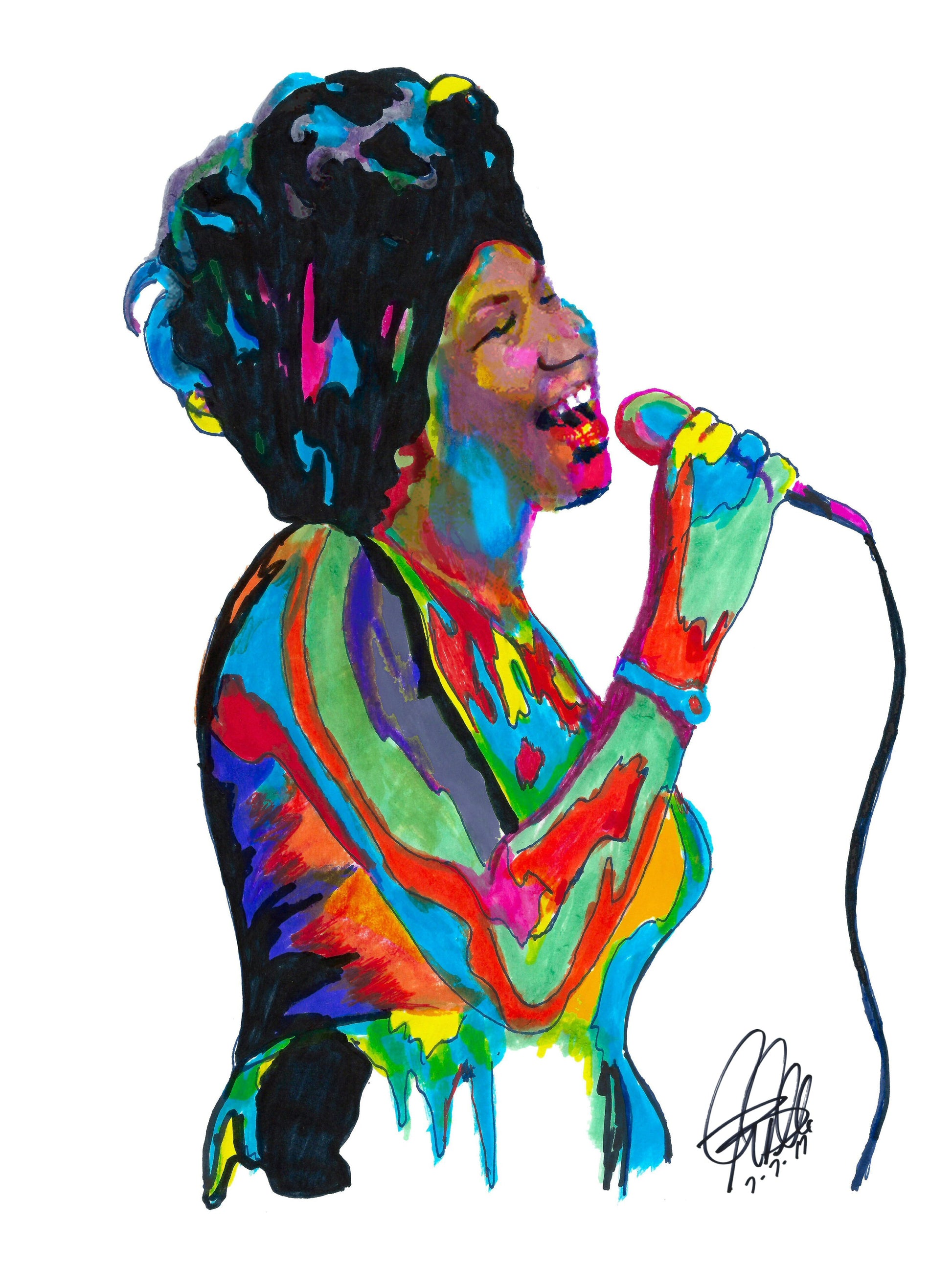 Print from Original Ink Drawing of Aretha Franklin. Printed on 18"x24" Premium Gloss High Quality Photo Paper. Print is great for matting and display – Signed & Dated by Artist on front of print - comes with Certificate of Authenticity with Your Name - will be shipped inside 3 x 30" 2 Mil Industrial Poly Bag & 2" x 19" Kraft Mailing Tubes with End Caps - .070: thick