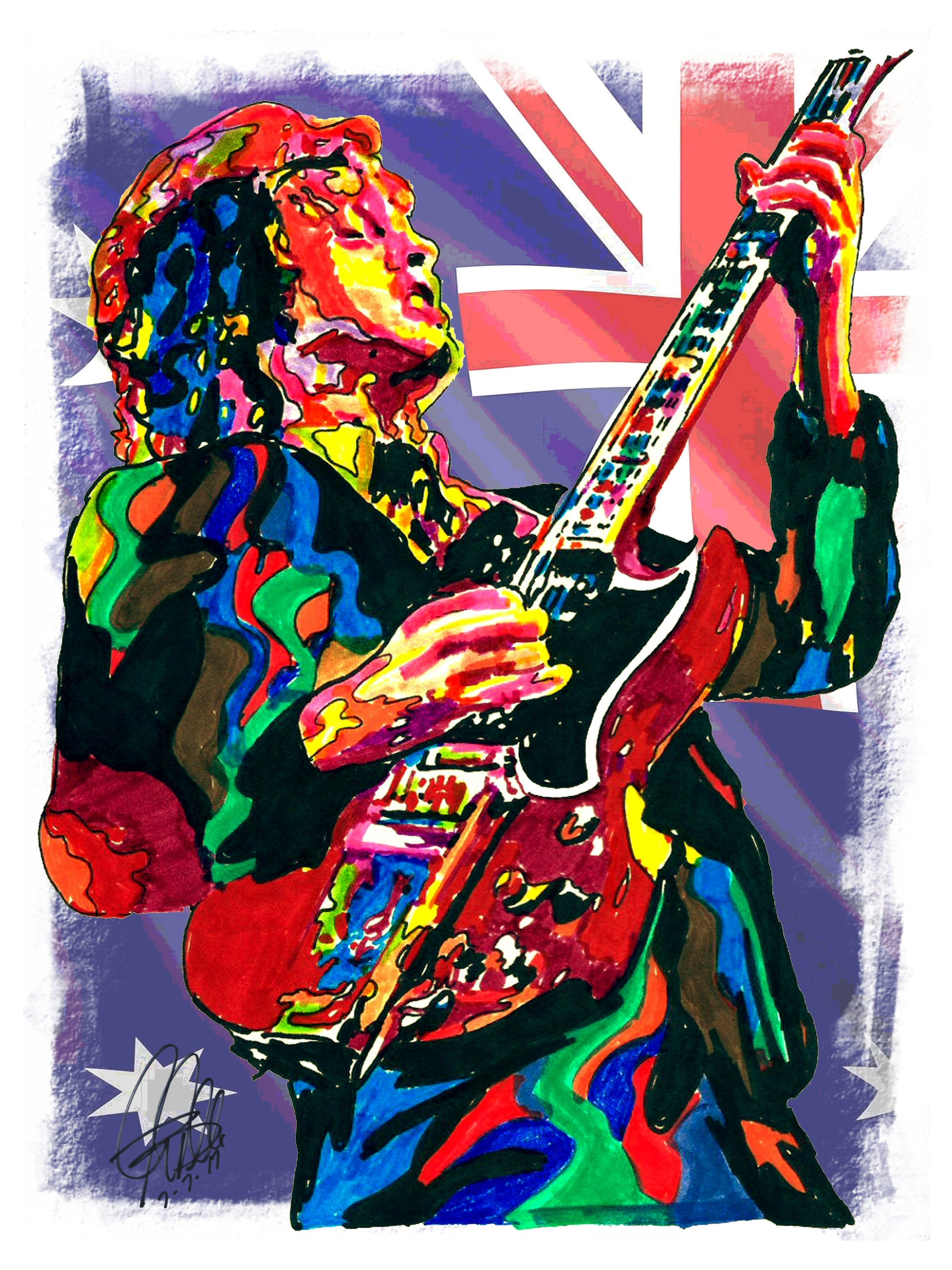 Print from Original Ink Drawing of Angus Young AC/DC. Printed on 18"x24" Premium Gloss High Quality Photo Paper. Print is great for matting and display – Signed & Dated by Artist on front of print - comes with Certificate of Authenticity with Your Name - will be shipped inside 3 x 30" 2 Mil Industrial Poly Bag & 2" x 19" Kraft Mailing Tubes with End Caps - .070: thick