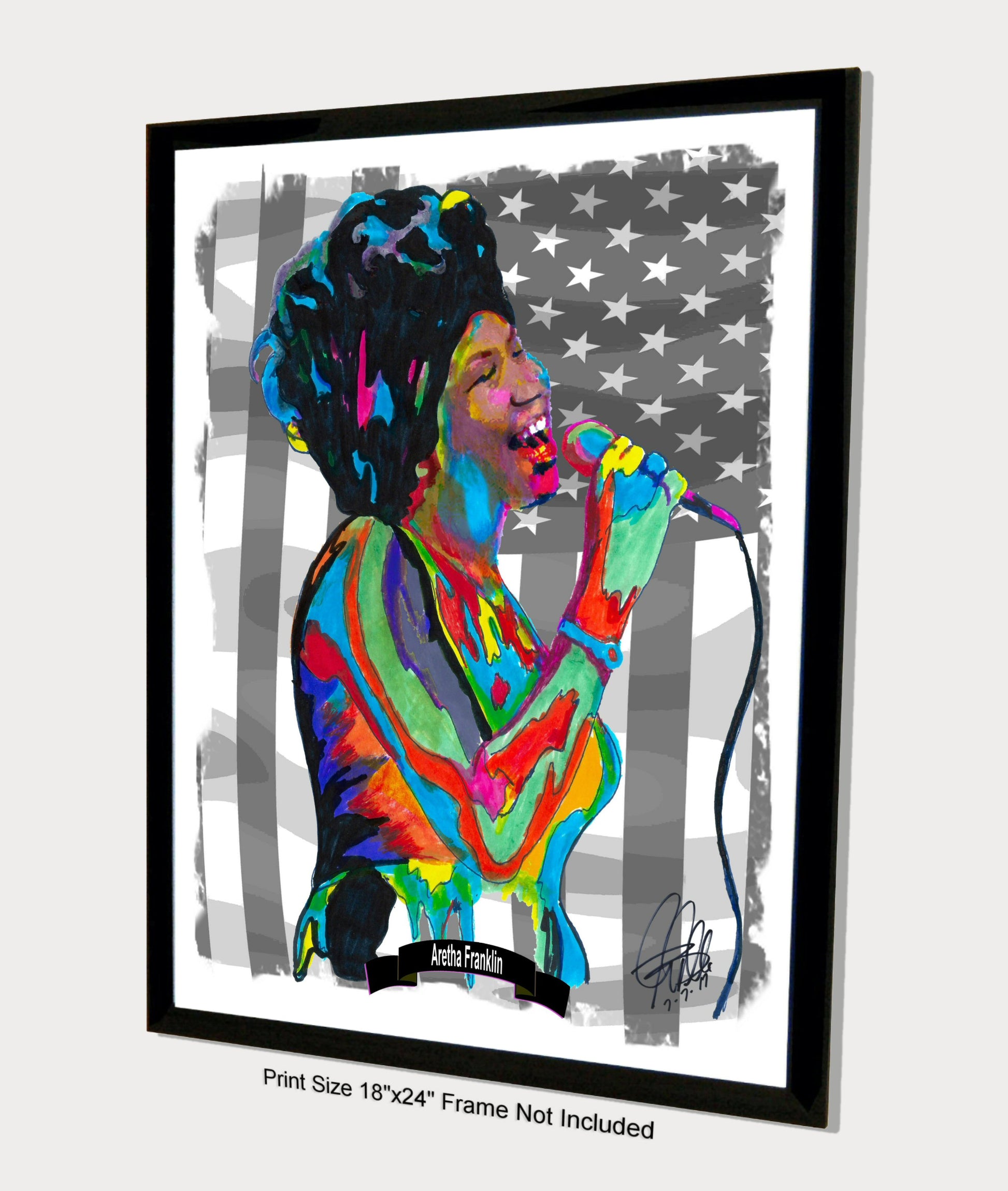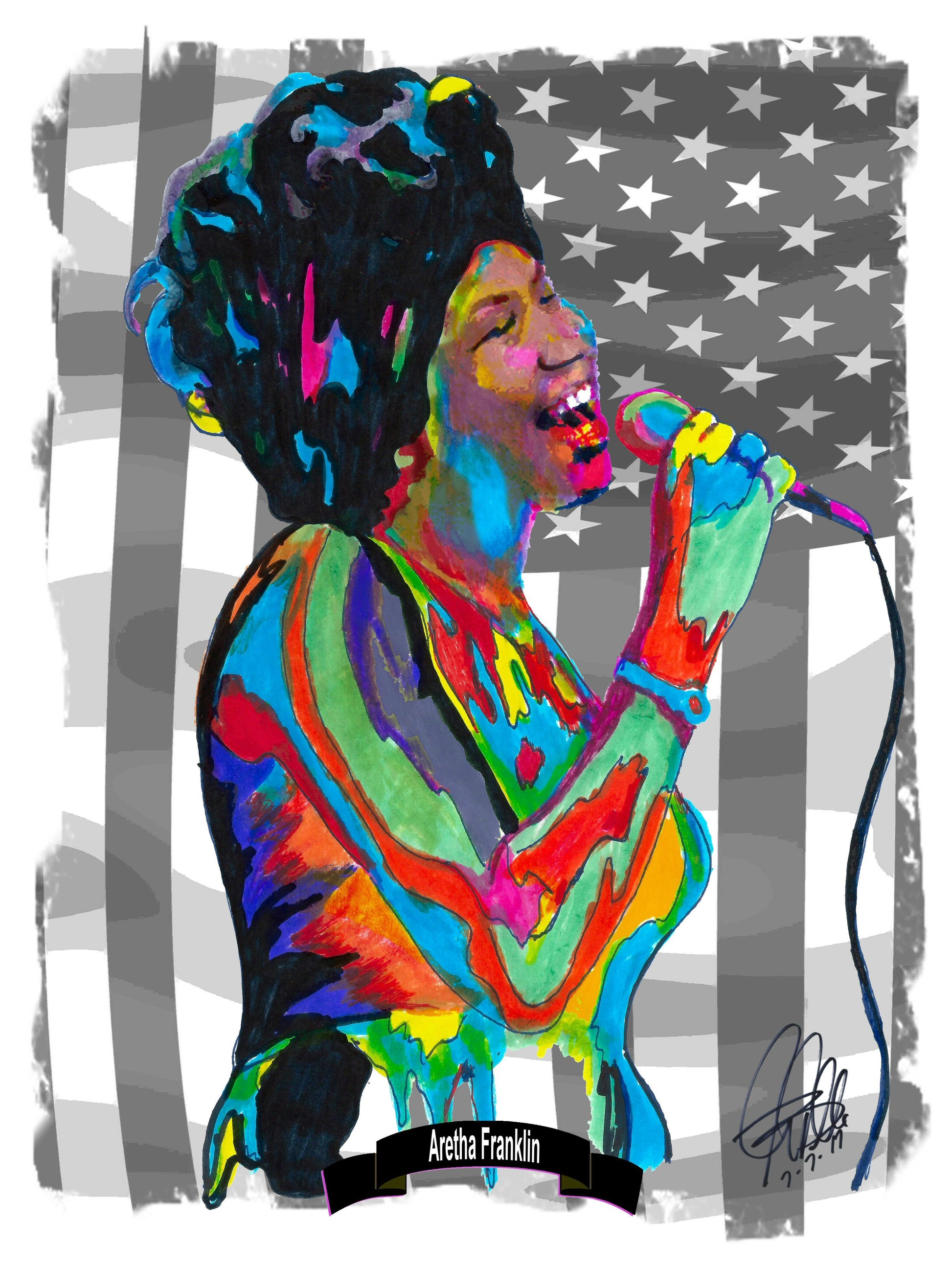 Print from Original Ink Drawing of Aretha Franklin. Printed on 18"x24" Premium Gloss High Quality Photo Paper. Print is great for matting and display – Signed & Dated by Artist on front of print - comes with Certificate of Authenticity with Your Name - will be shipped inside 3 x 30" 2 Mil Industrial Poly Bag & 2" x 19" Kraft Mailing Tubes with End Caps - .070: thick