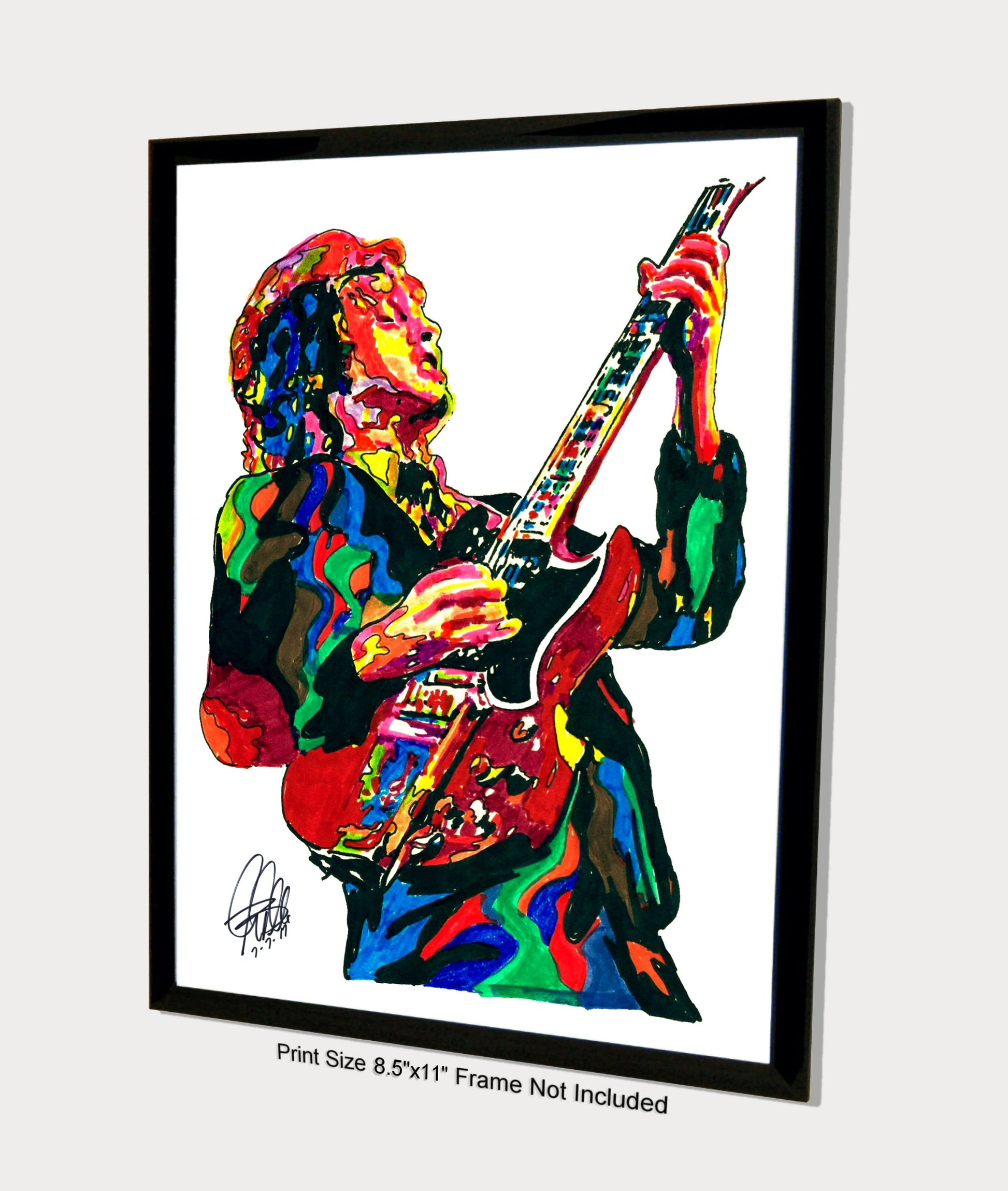 Print from Original Ink Drawing of Angus Young of AC/DC. Printed on 8.5"x11" Premium Gloss High Quality Photo Paper. Print is great for matting and display – Signed & Dated by Artist on front of print - comes with Certificate of Authenticity with Your Name - will be shipped inside 12"x12"x1" sturdy container.