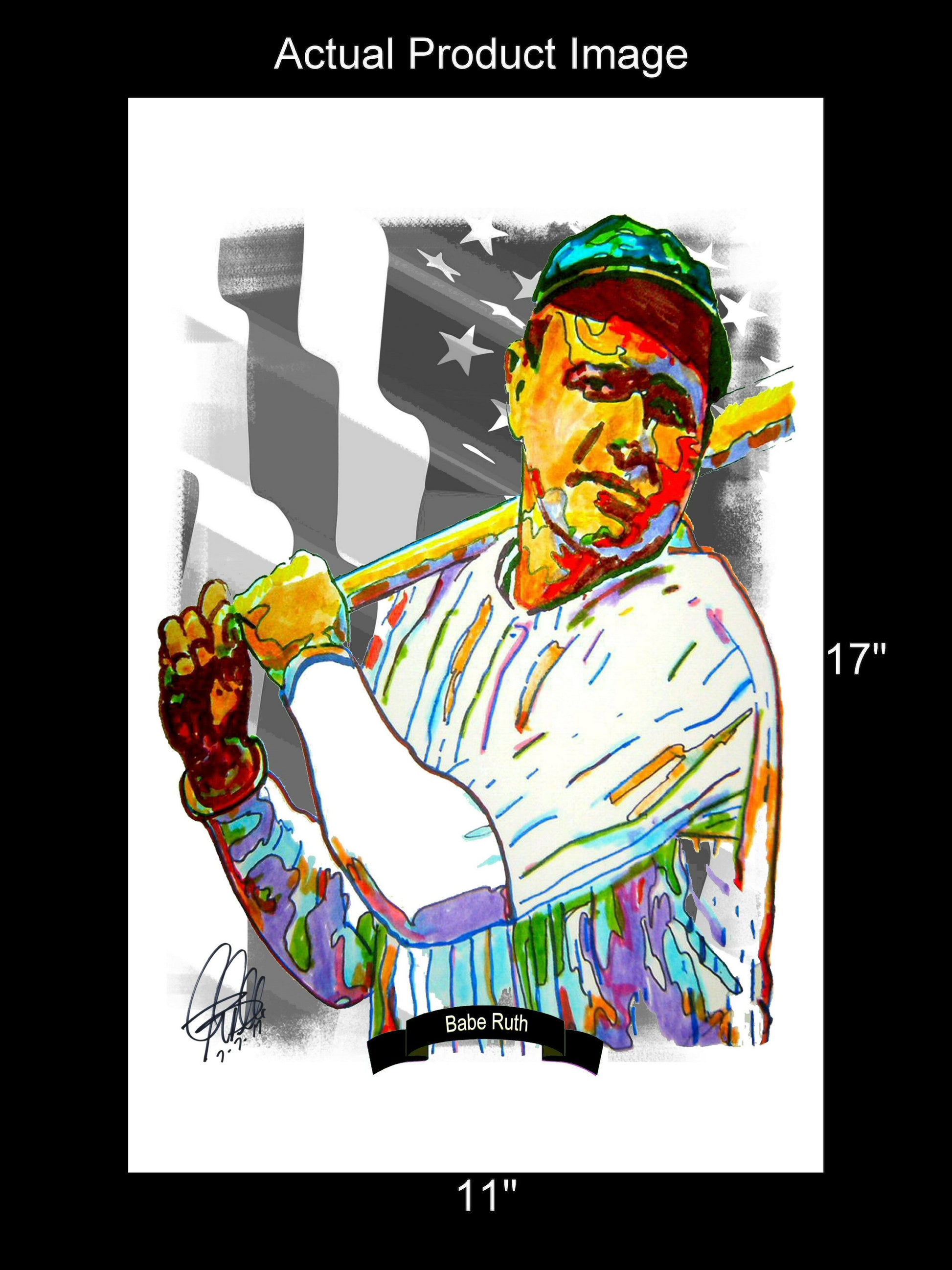 Print from Original Ink Drawing of Babe Ruth. Printed on 11"x17" Premium Gloss High Quality Photo Paper. Print is great for matting and display – Signed & Dated by Artist on front of print - comes with Certificate of Authenticity with Your Name - will be shipped inside 3 x 30" 2 Mil Industrial Poly Bag & 2" x 19" Kraft Mailing Tubes with End Caps - .070: thick