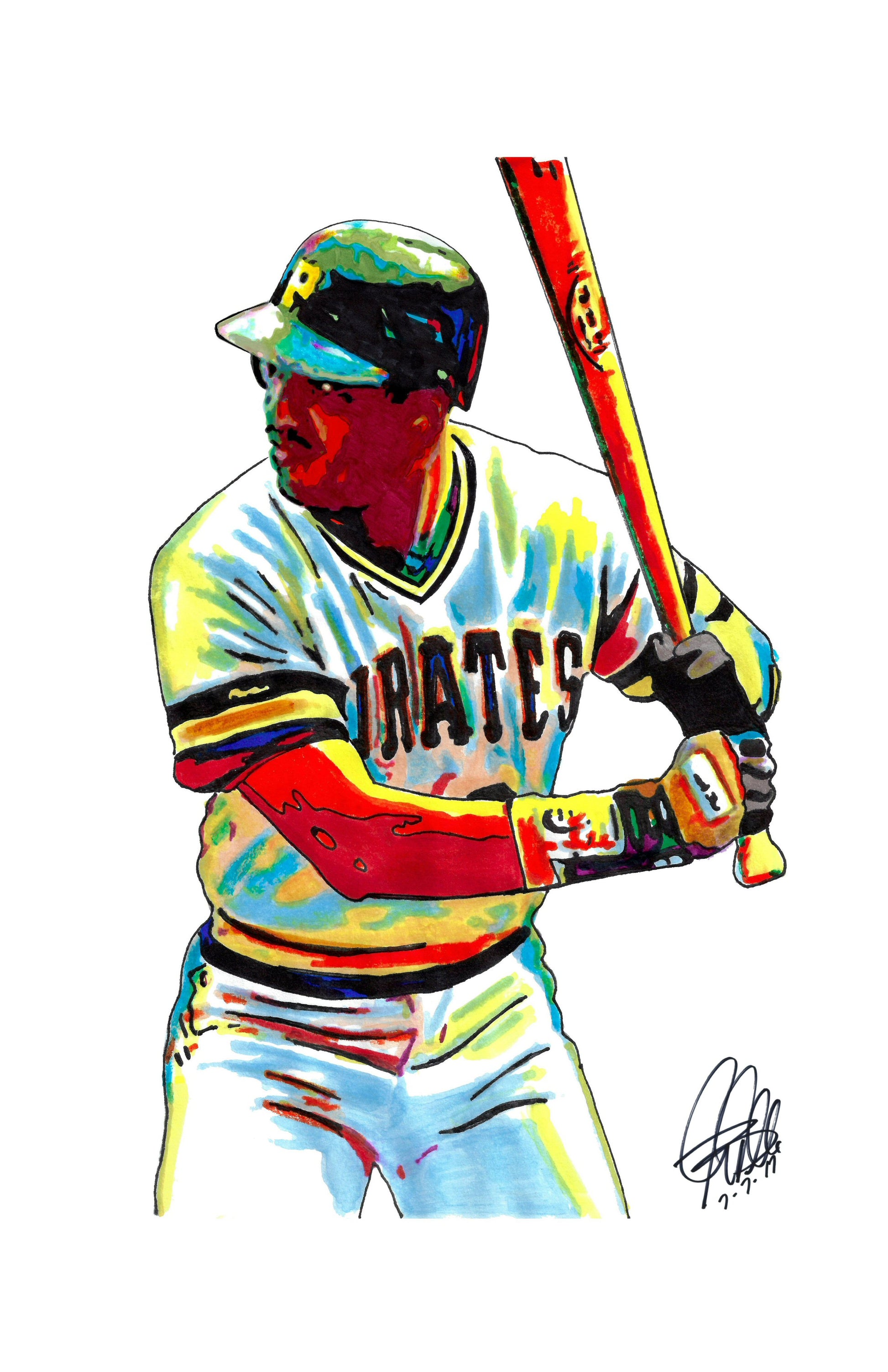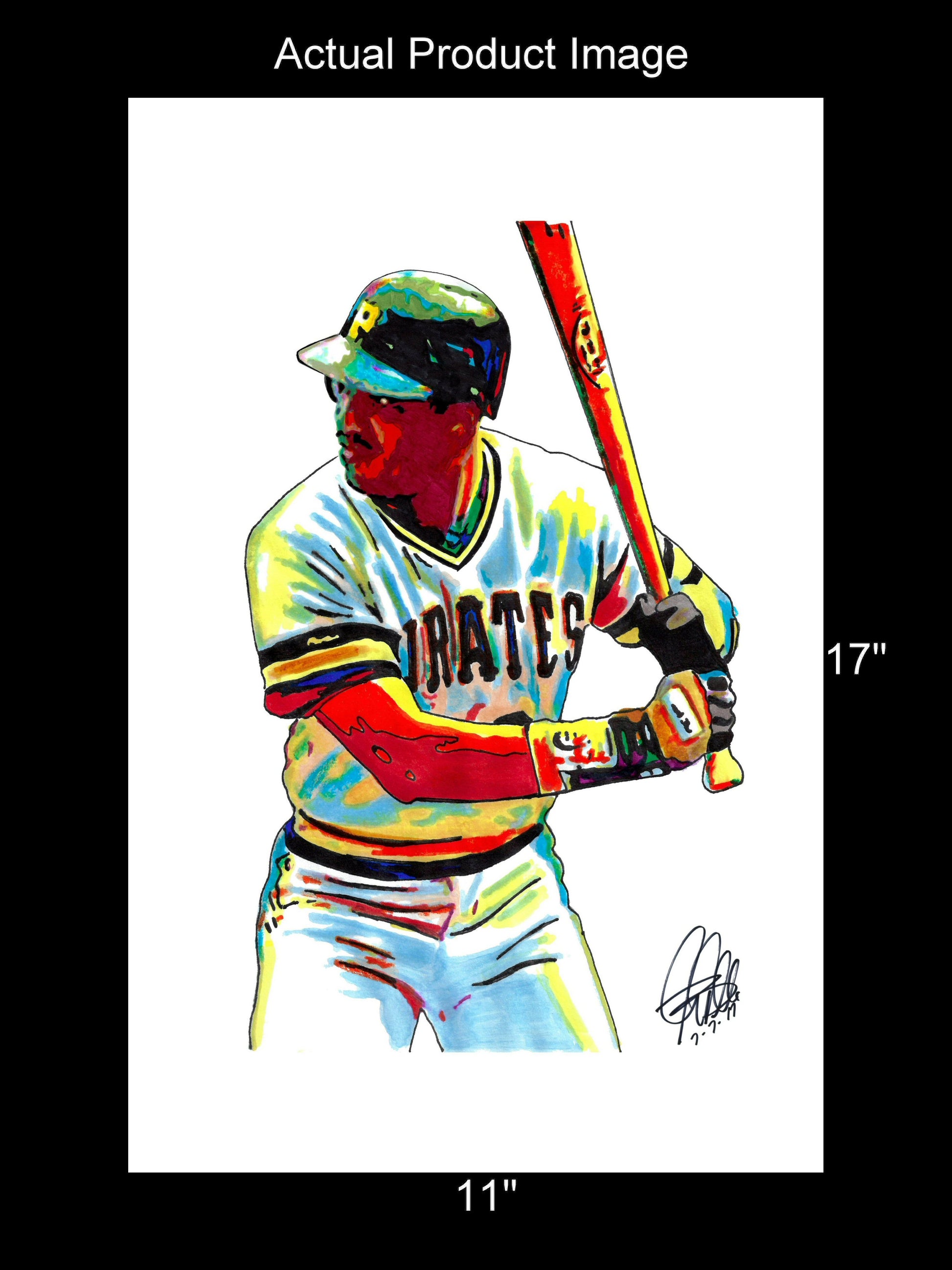 Print from Original Ink Drawing of Barry Bonds of the Pittsburgh Pirates. Printed on 11"x17" Premium Gloss High Quality Photo Paper. Print is great for matting and display – Signed & Dated by Artist on front of print - comes with Certificate of Authenticity with Your Name - will be shipped inside 3 x 30" 2 Mil Industrial Poly Bag & 2" x 19" Kraft Mailing Tubes with End Caps - .070: thick