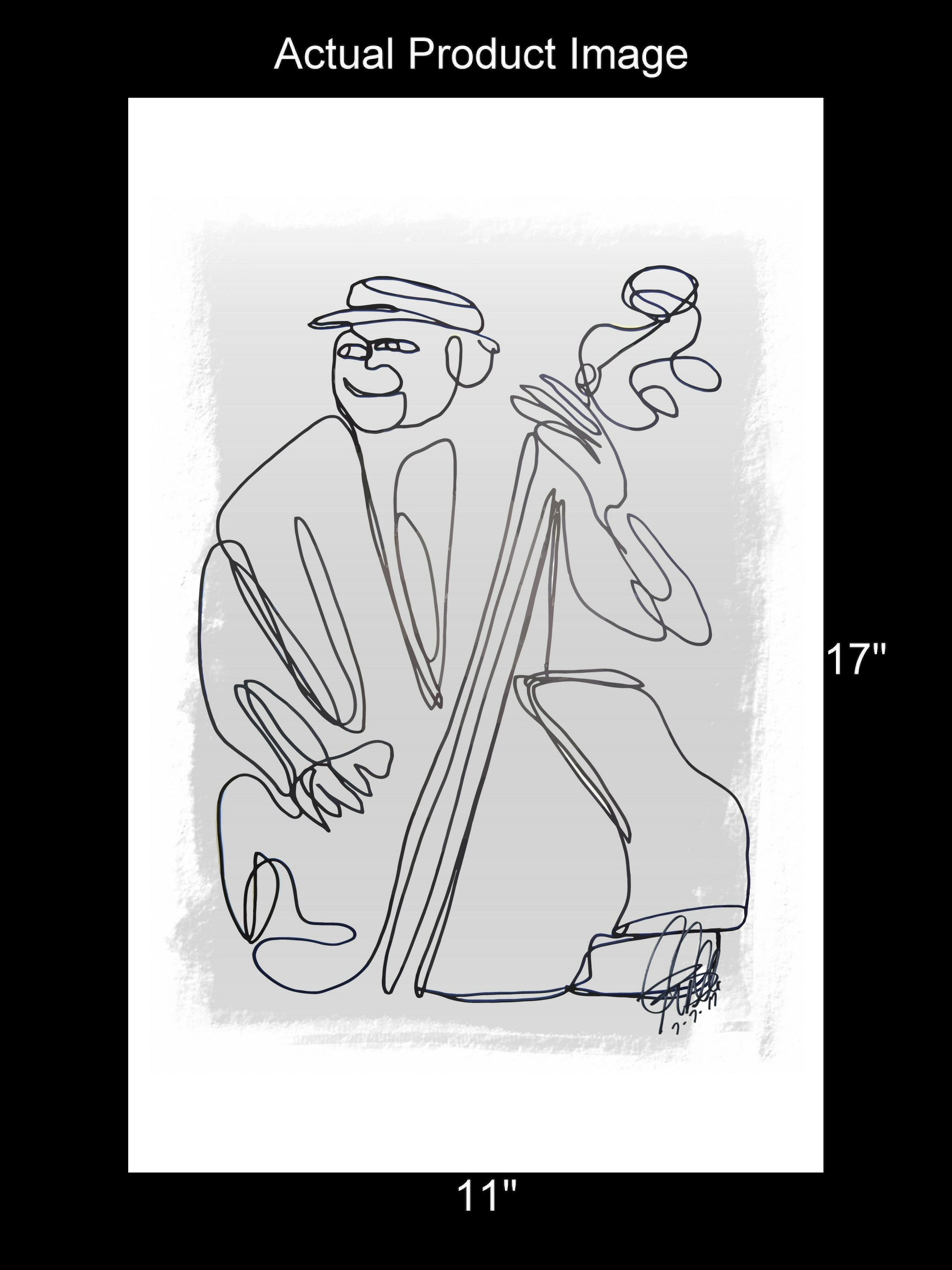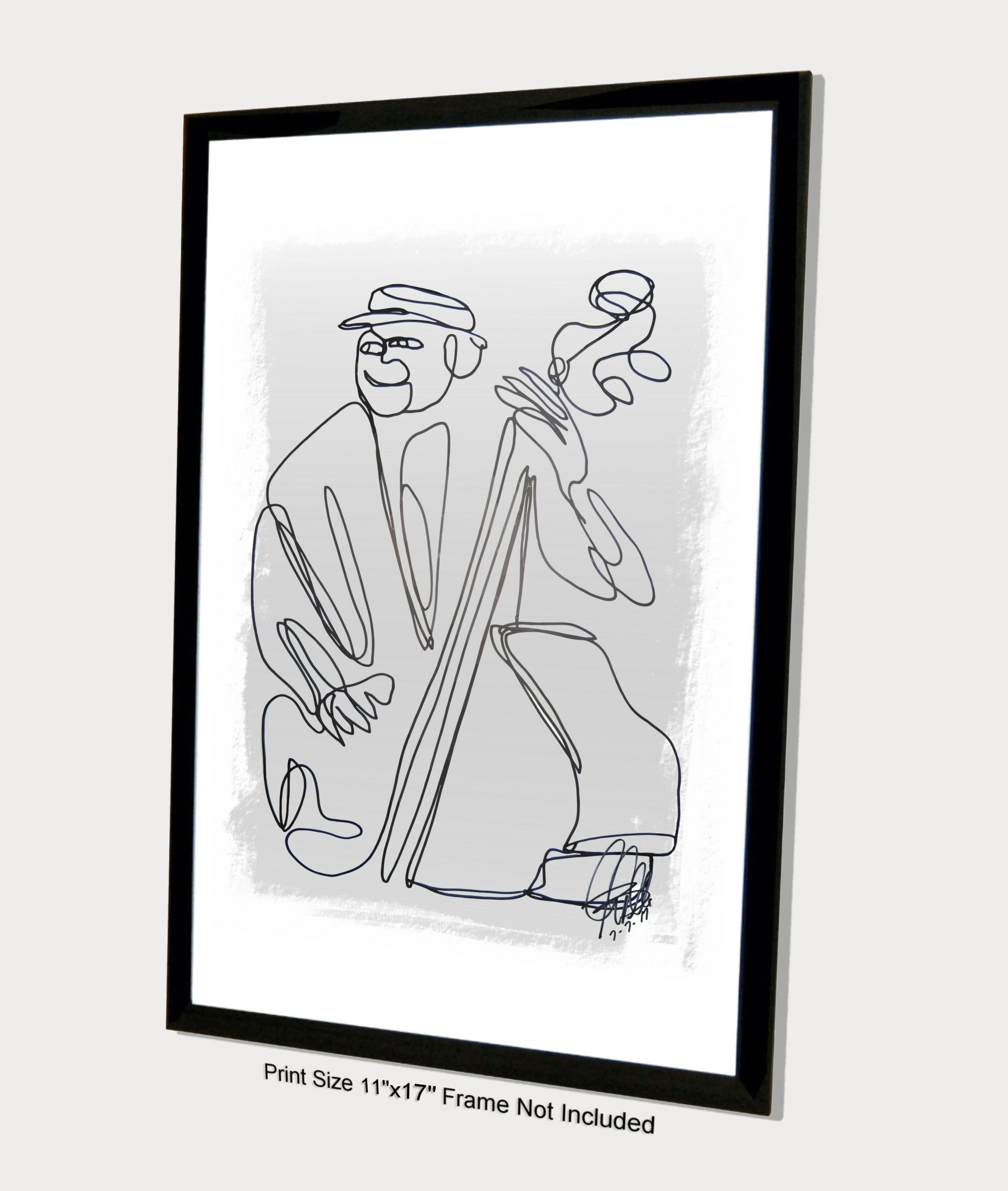 Print from Original Ink Drawing of Upright Bass Player. Printed on 11"x17" Premium Gloss High Quality Photo Paper. Print is great for matting and display – Signed & Dated by Artist on front of print - comes with Certificate of Authenticity with Your Name - will be shipped inside 3 x 30" 2 Mil Industrial Poly Bag & 2" x 19" Kraft Mailing Tubes with End Caps - .070: thick
