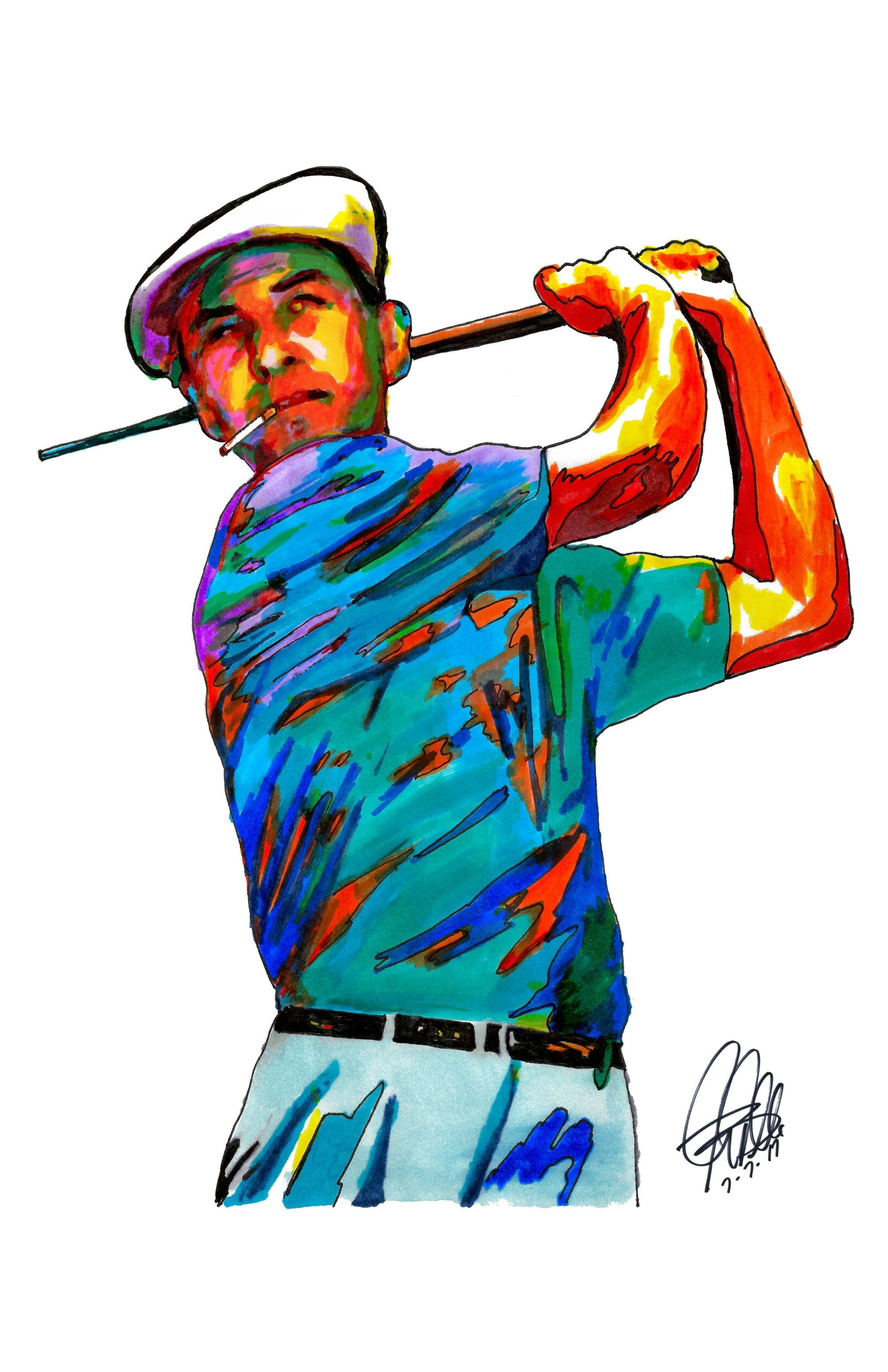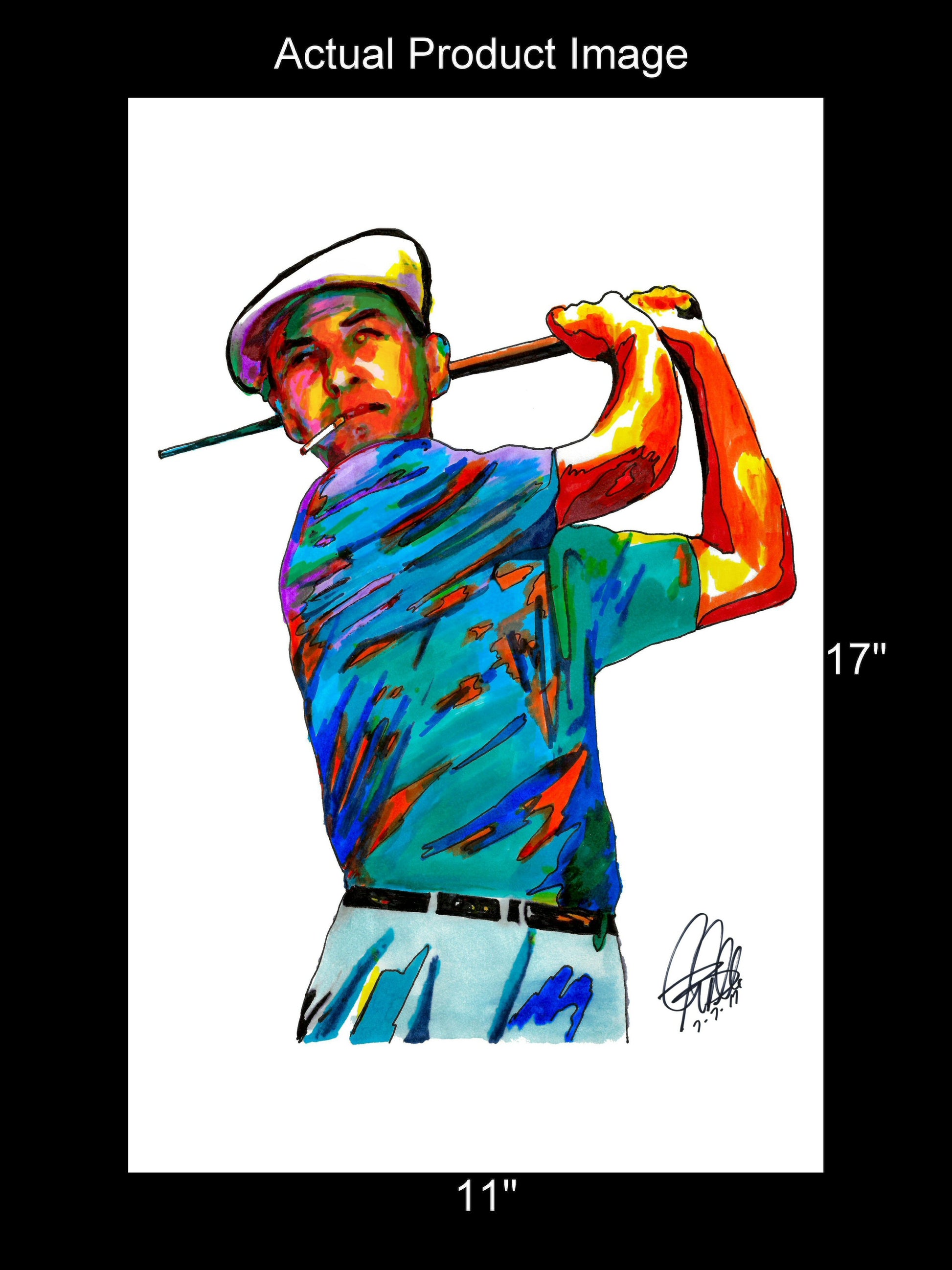 Print from Original Ink Drawing of Ben Hogan. Printed on 11"x17" Premium Gloss High Quality Photo Paper. Print is great for matting and display – Signed & Dated by Artist on front of print - comes with Certificate of Authenticity with Your Name - will be shipped inside 3 x 30" 2 Mil Industrial Poly Bag & 2" x 19" Kraft Mailing Tubes with End Caps - .070: thick