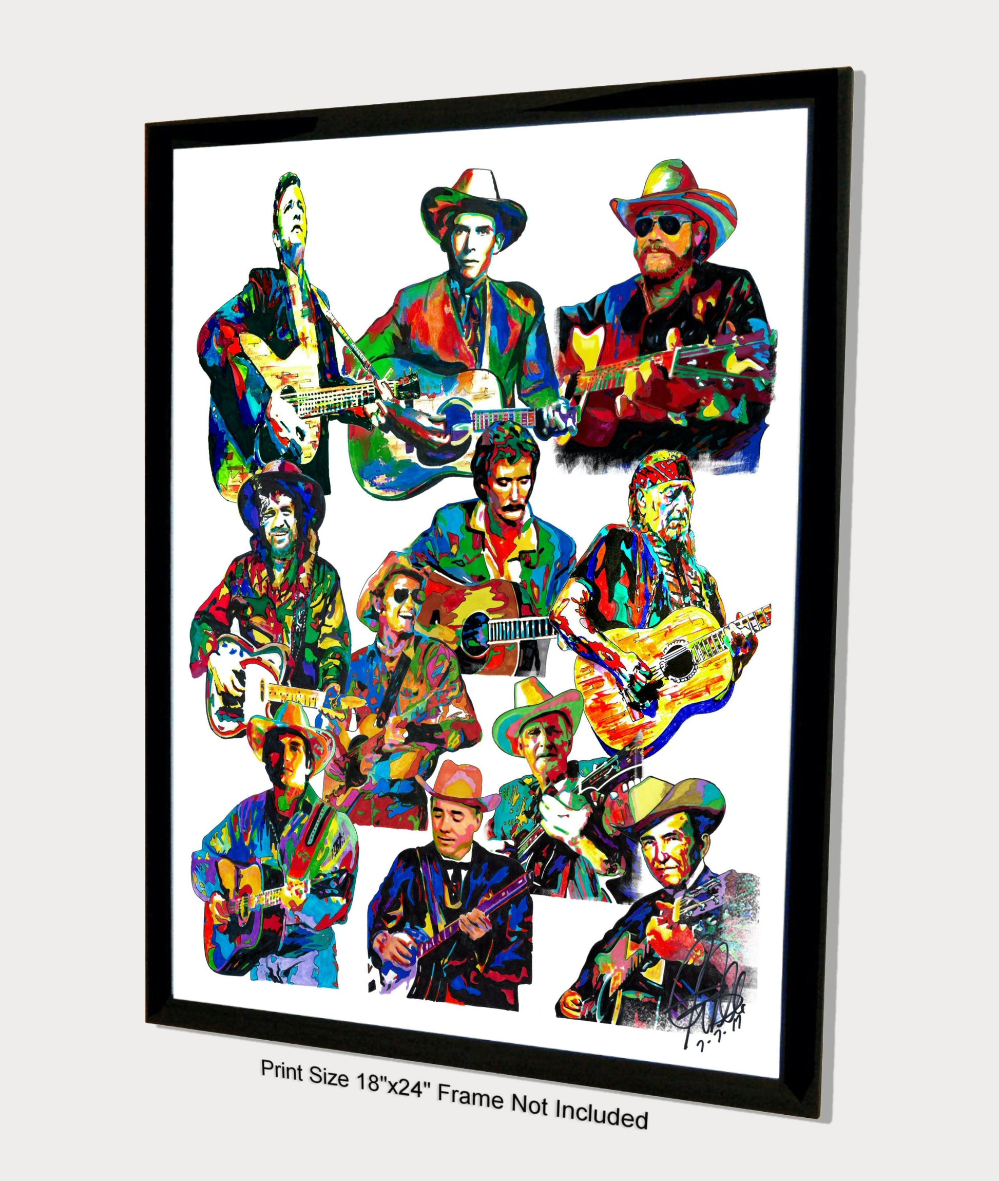 Bluegrass Country Players Johnny Cash Willie Nelson Poster Print Wall Art 18x24