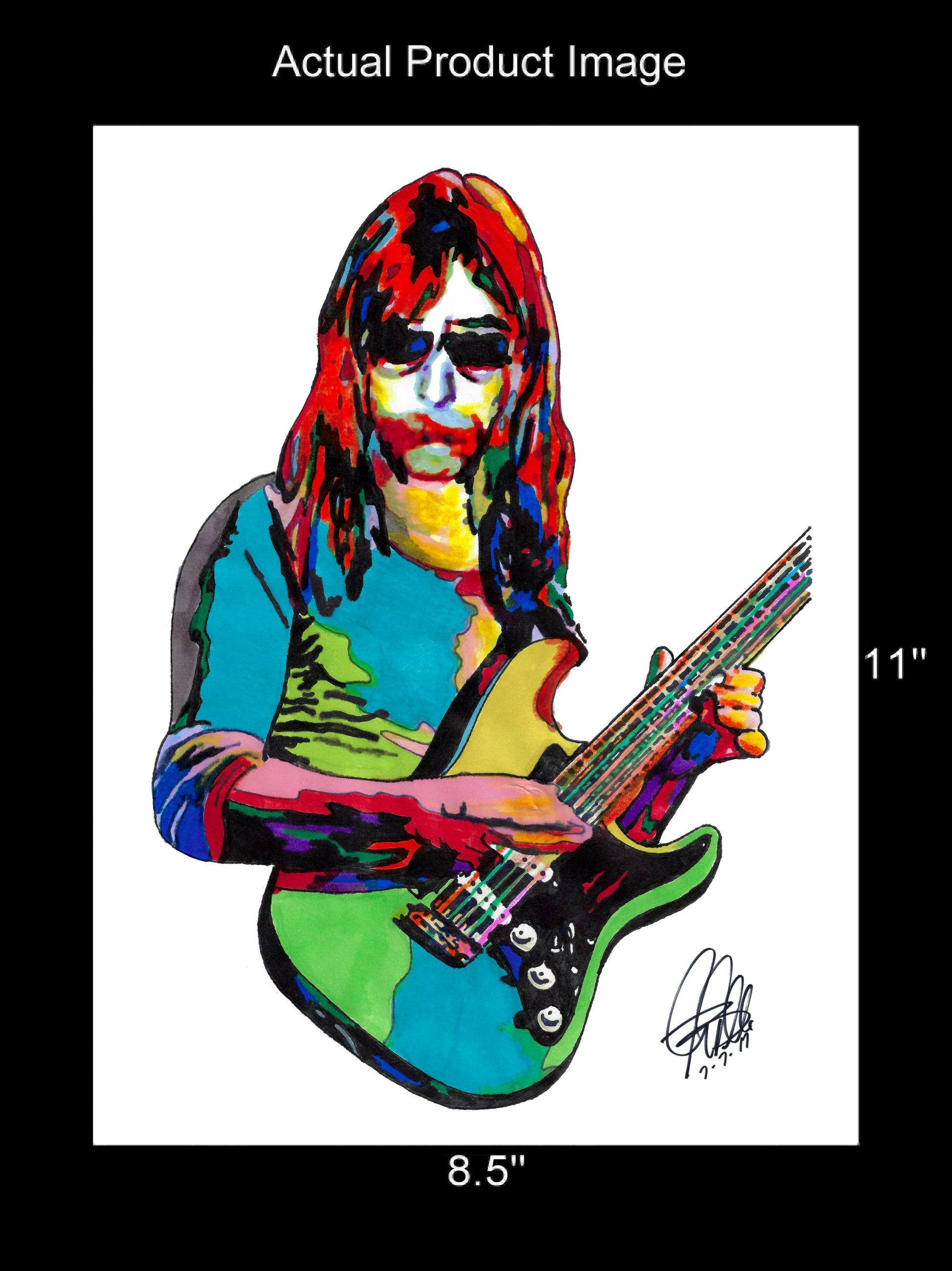 Print from Original Ink Drawing of Jeff "Skunk" Baxter. Printed on 8.5"x11" Premium Gloss High Quality Photo Paper. Print is great for matting and display – Signed & Dated by Artist on front of print - comes with Certificate of Authenticity with Your Name - will be shipped inside 12"x12"x1" sturdy container.