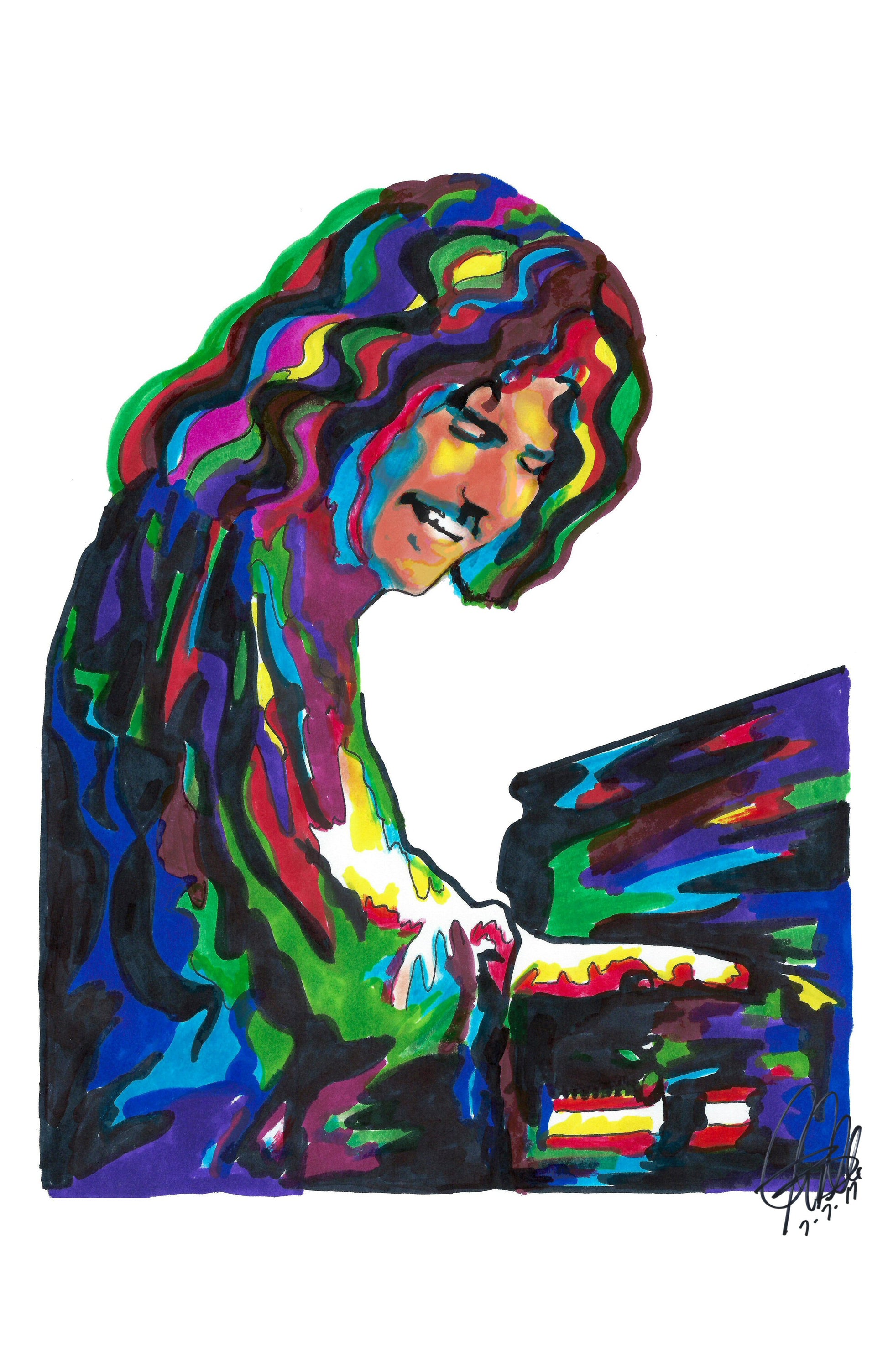 Print from Original Ink Drawing of Billy Powell of Lynyrd Skynyrd. Printed on 11"x17" Premium Gloss High Quality Photo Paper. Print is great for matting and display – Signed & Dated by Artist on front of print - comes with Certificate of Authenticity with Your Name - will be shipped inside 3 x 30" 2 Mil Industrial Poly Bag & 2" x 19" Kraft Mailing Tubes with End Caps - .070: thick