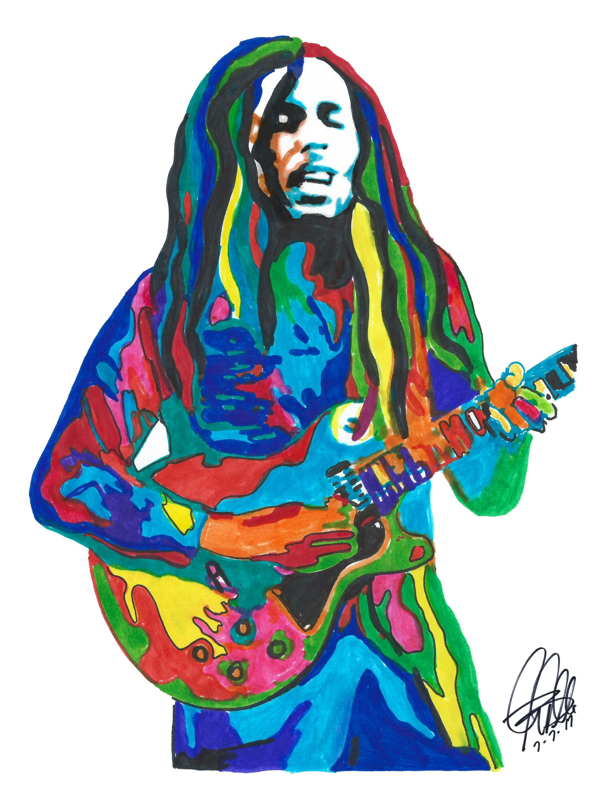 Print from Original Ink Drawing of Bob Marley. Printed on 8.5"x11" Premium Gloss High Quality Photo Paper. Print is great for matting and display – Signed & Dated by Artist on front of print - comes with Certificate of Authenticity with Your Name - will be shipped inside 12"x12"x1" sturdy container.